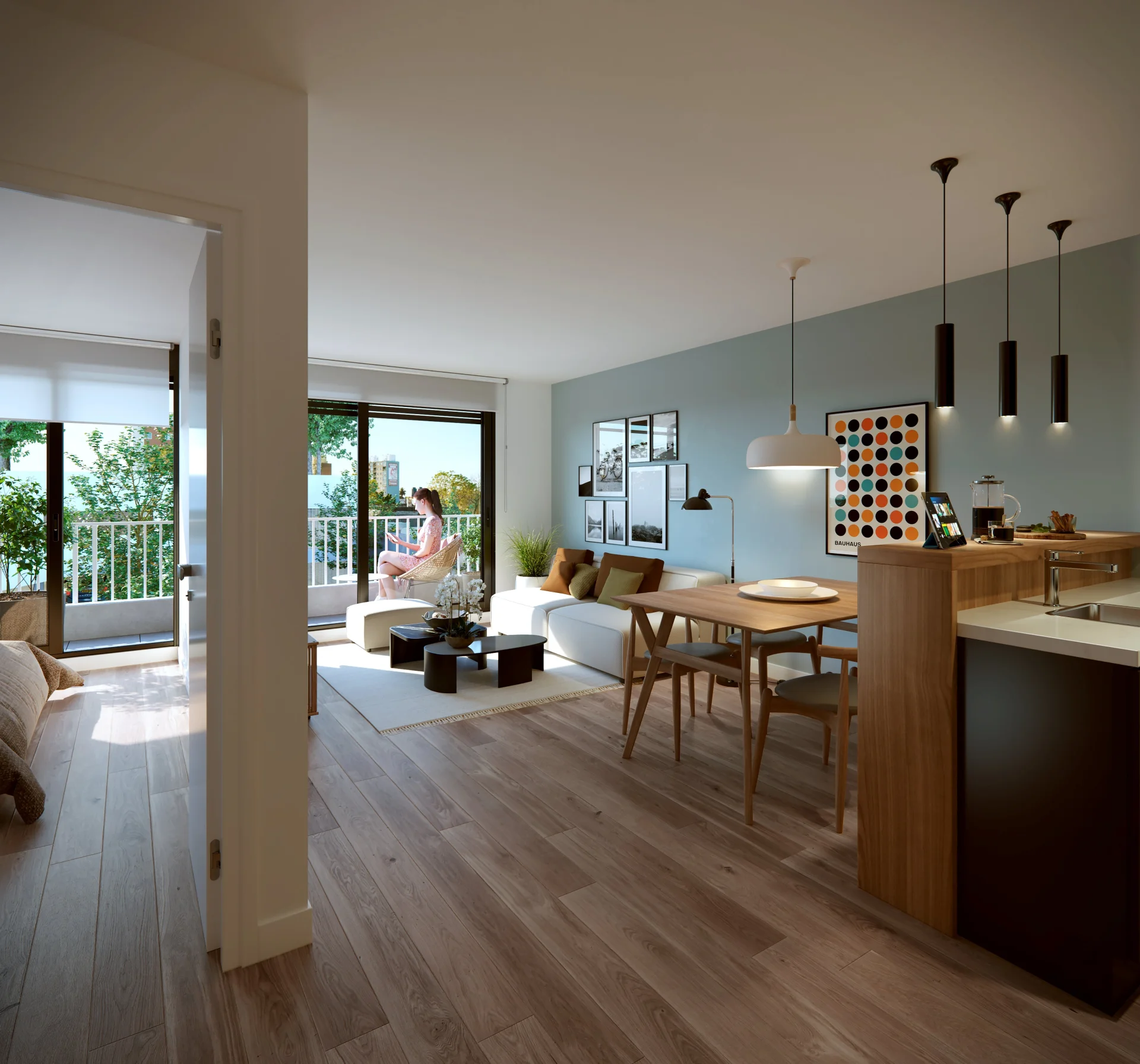 Contará con amenities de calidad como: piscina, espacio relax, gimnasio in -out equipado, cancha de futbol, cancha básket, barbacoa equipada, terraza 360° con living de exterior, espacio cowork, sala de lectura, laundry de lavado y secado con app, racks de soporte para bicis, cargadores para autos eléctricos y ventanas doble vidrio hermético.