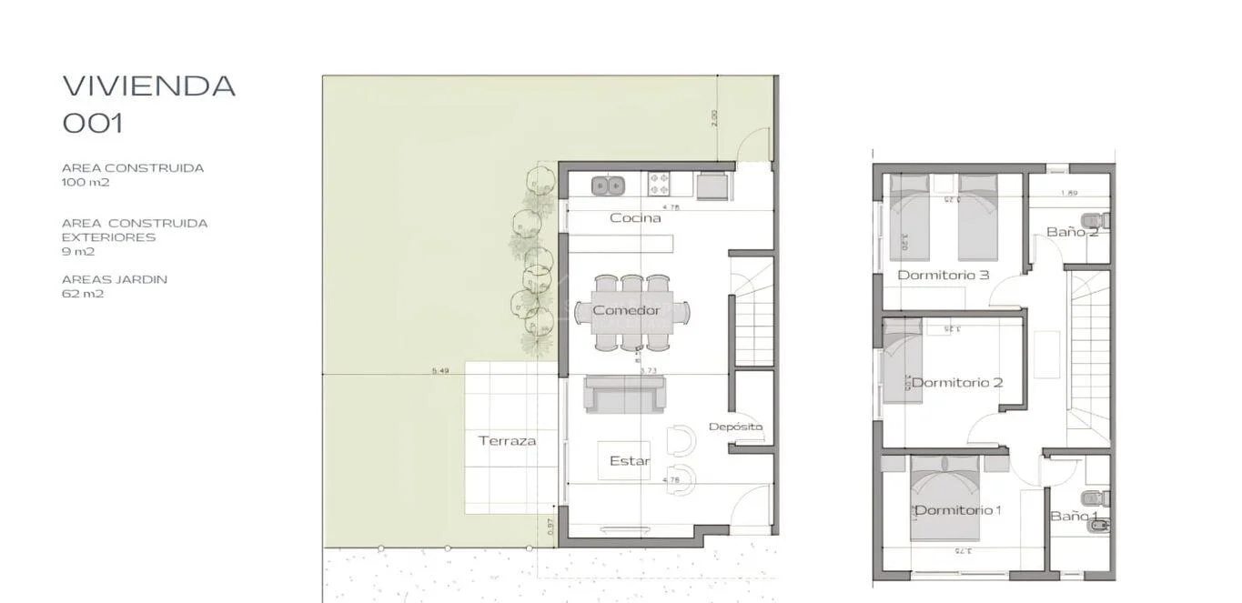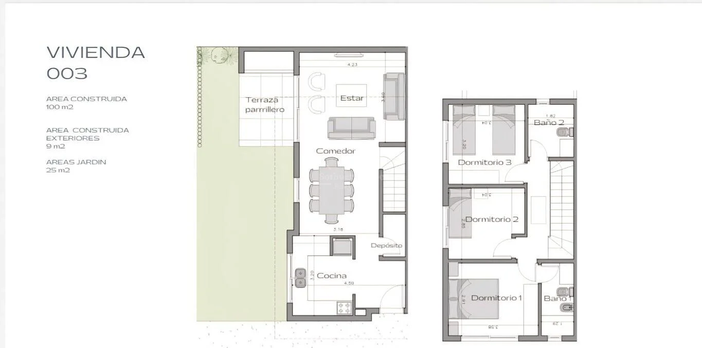 Cada casa está distribuida en dos plantas con diseño moderno, funcional y luminoso: