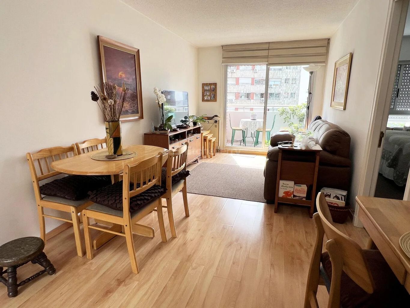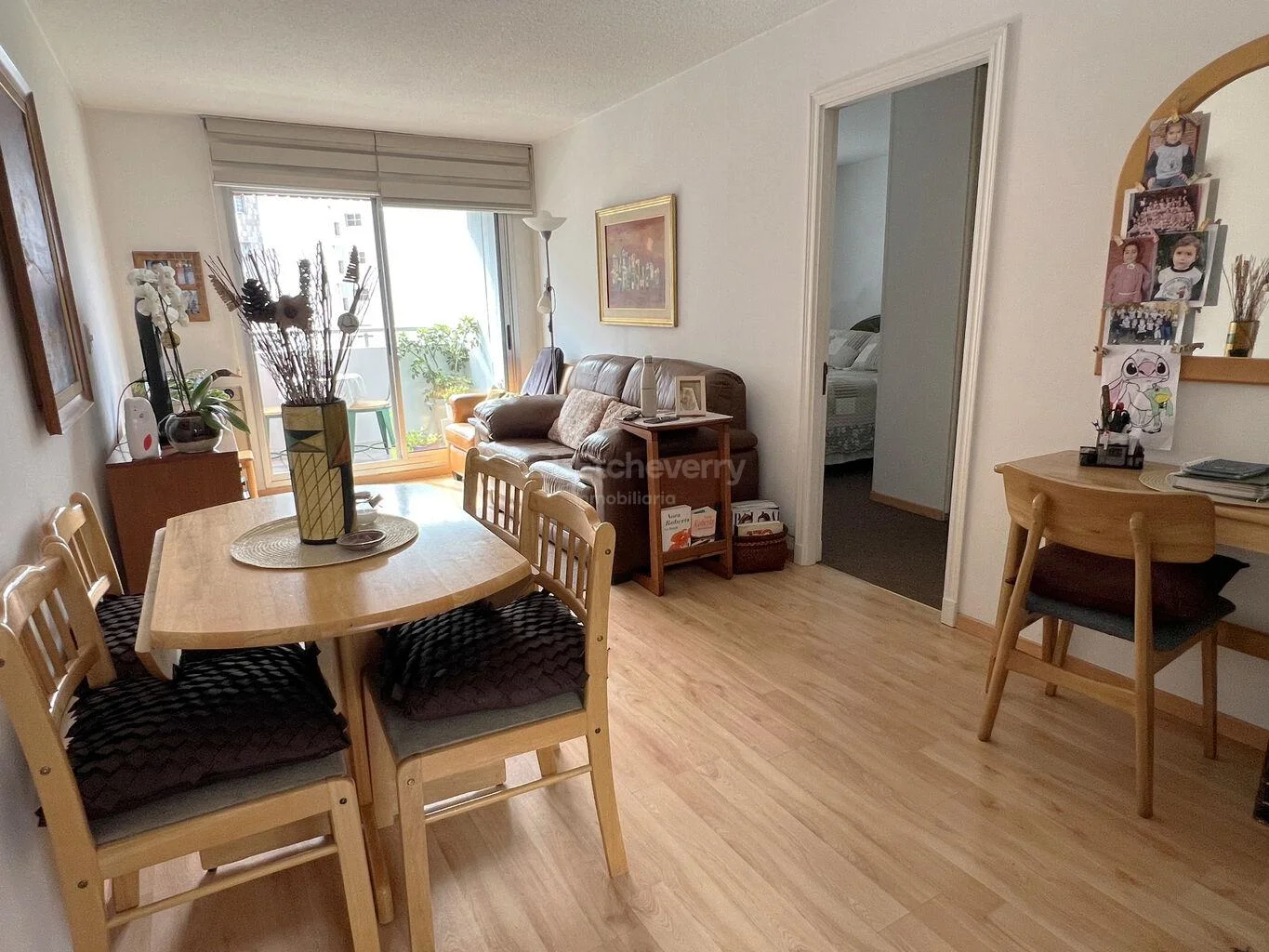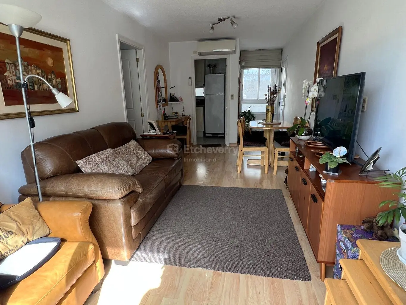 El living comedor es amplio y luminoso, con salida a una terraza disfrutable al frente. Cuenta con aire acondicionado y pisos flotantes en muy buen estado.