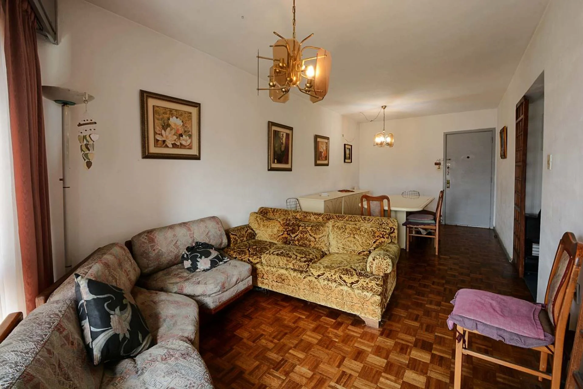 Gran living comedor orientado al frente con excelente iluminación, pisos de parquet, ventanal y salida a pequeña terraza con hermosa vista.
