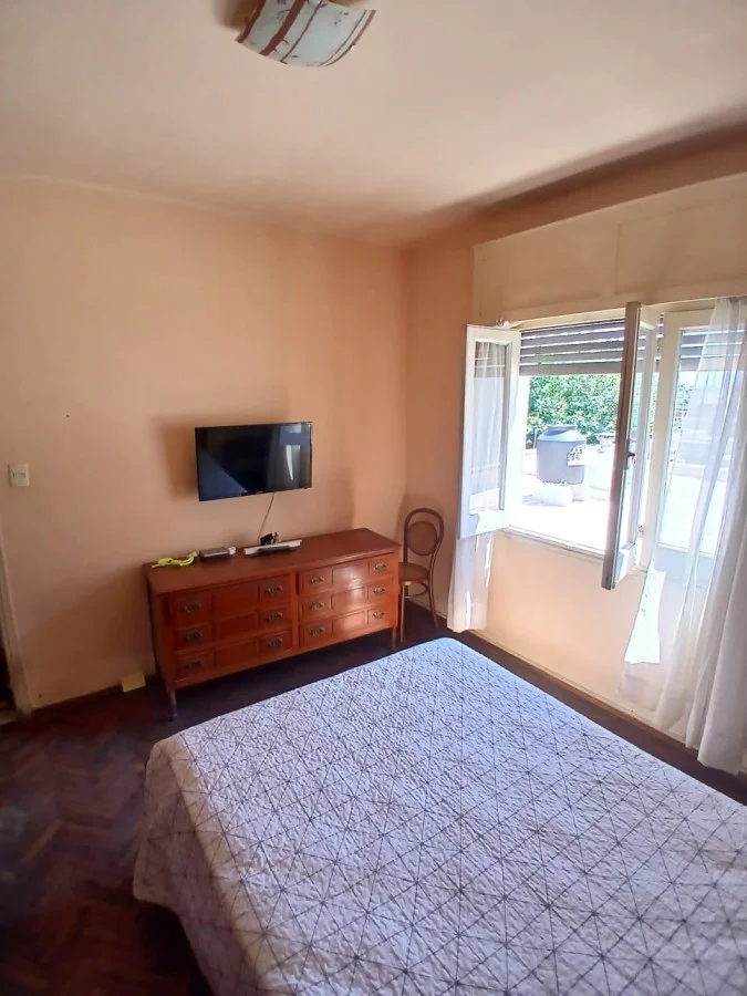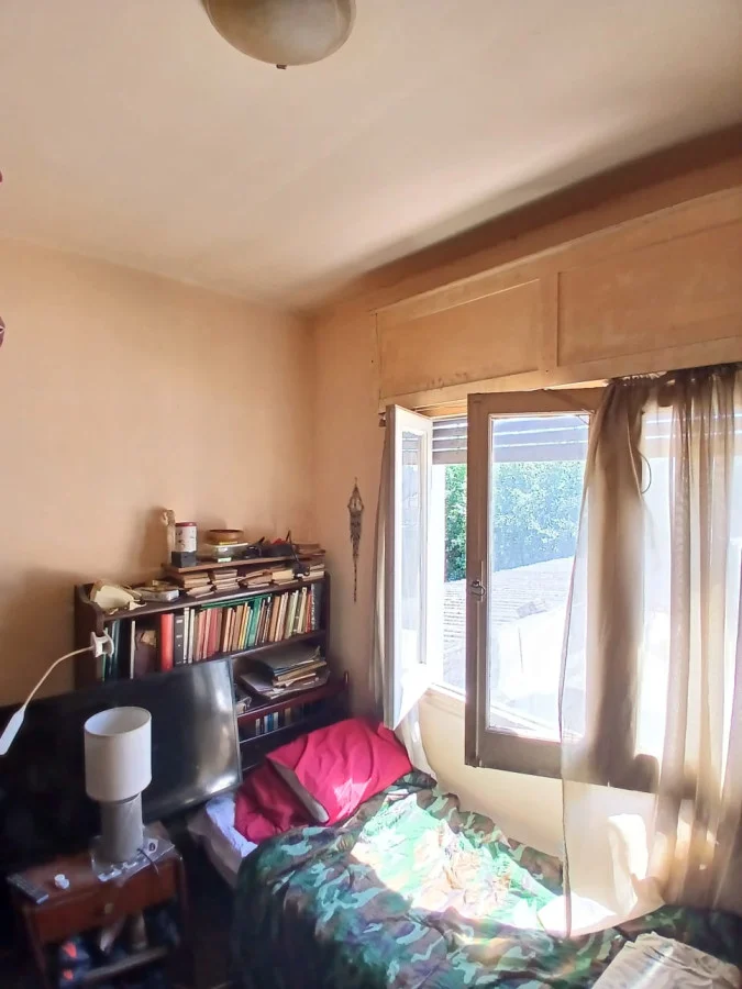 El principal (3.20 x 2.50 m) con tres enchufes, ventana de madera y persiana original, ideal para el descanso o como espacio multifuncional.