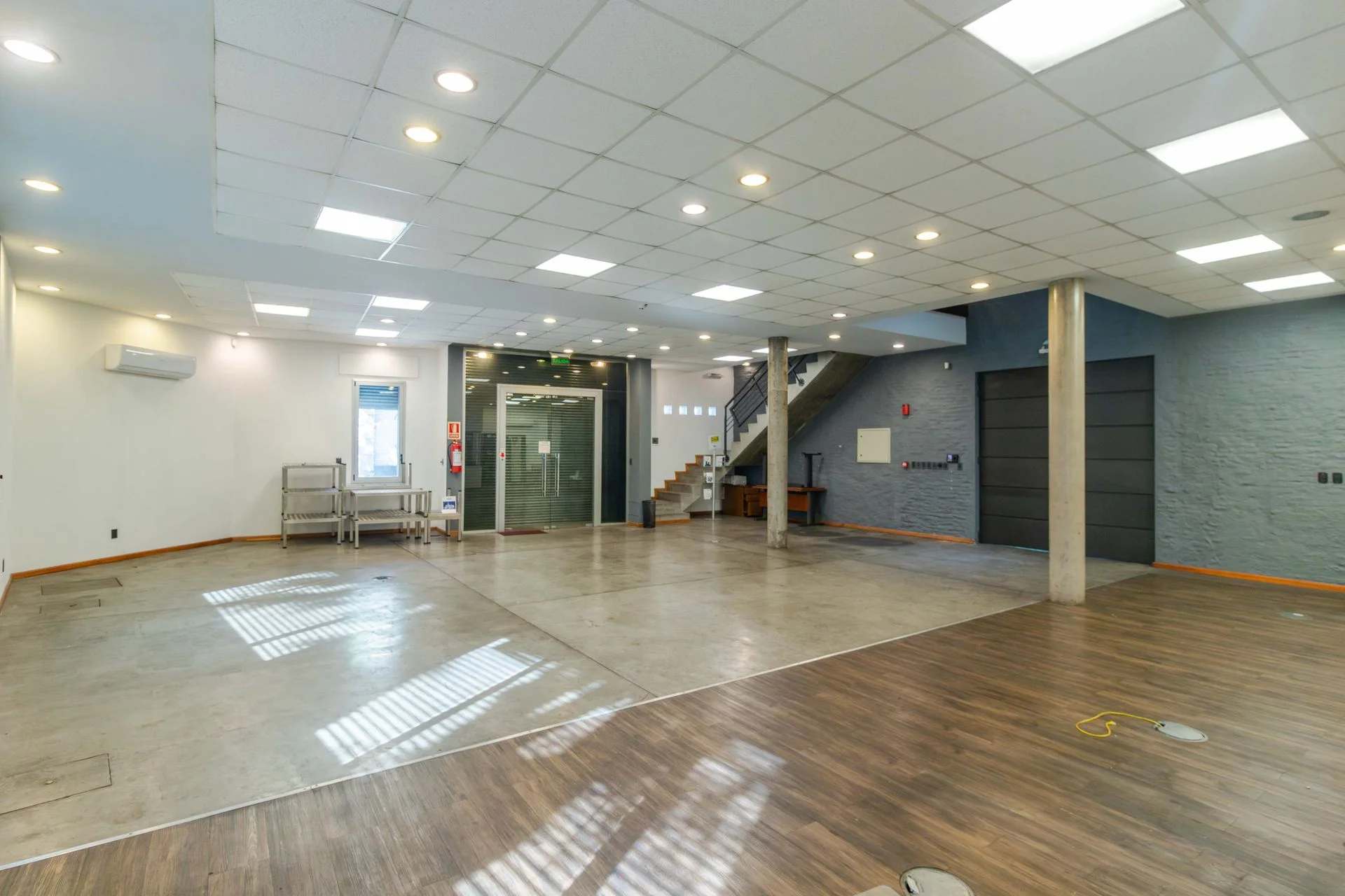 El otro padron tiene 211 m2 de terreno y 383 m2 construidos. Se conecta al deposito con una puerta corrediza y tenemos acceso a un gran salon de ventas con entrada directo desde la calle, una oficina independiente muy amplia, y en planta alta mas oficinas con 2 baños y cocina, y otro deposito mas pequeño con monta carga.