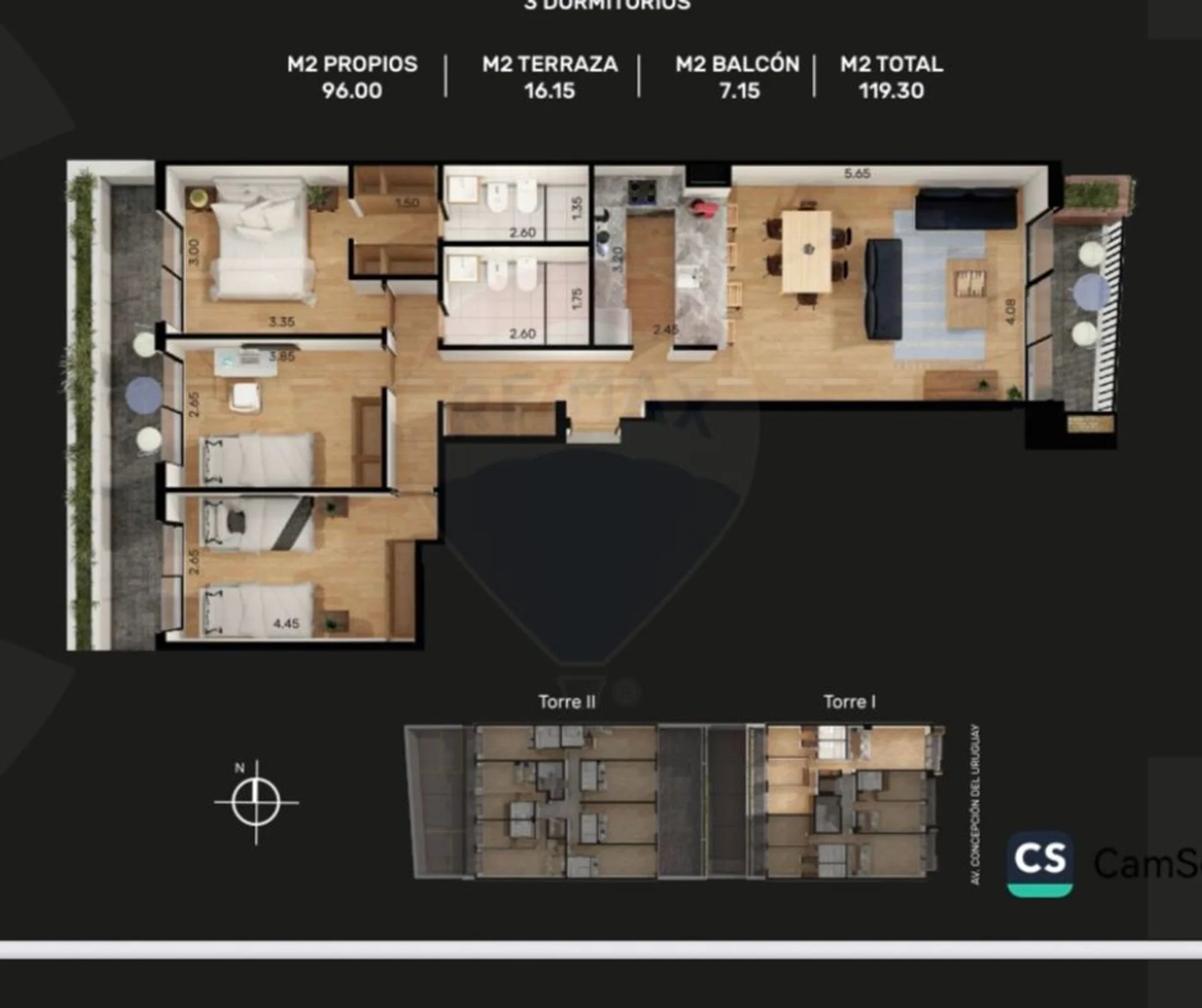 Venta Departamento a estrenar, muy luminoso, de 3 Dormitorios, 2 baños y cochera. Esta unidad cuenta salida a terraza con parrillero.. Los dormitorios también cuentan con salida a balcón. Muy bien distribuido, muy buenas dimensiones en todos los ambientes!! (cuenta con placares en todos los dormitorios, corredores, más vestidor en el dormitorio principal en suite, cortinas de enrollar, detectores de incendio, preinstalación de aires acondicionados, terminaciones de primer nivel!)