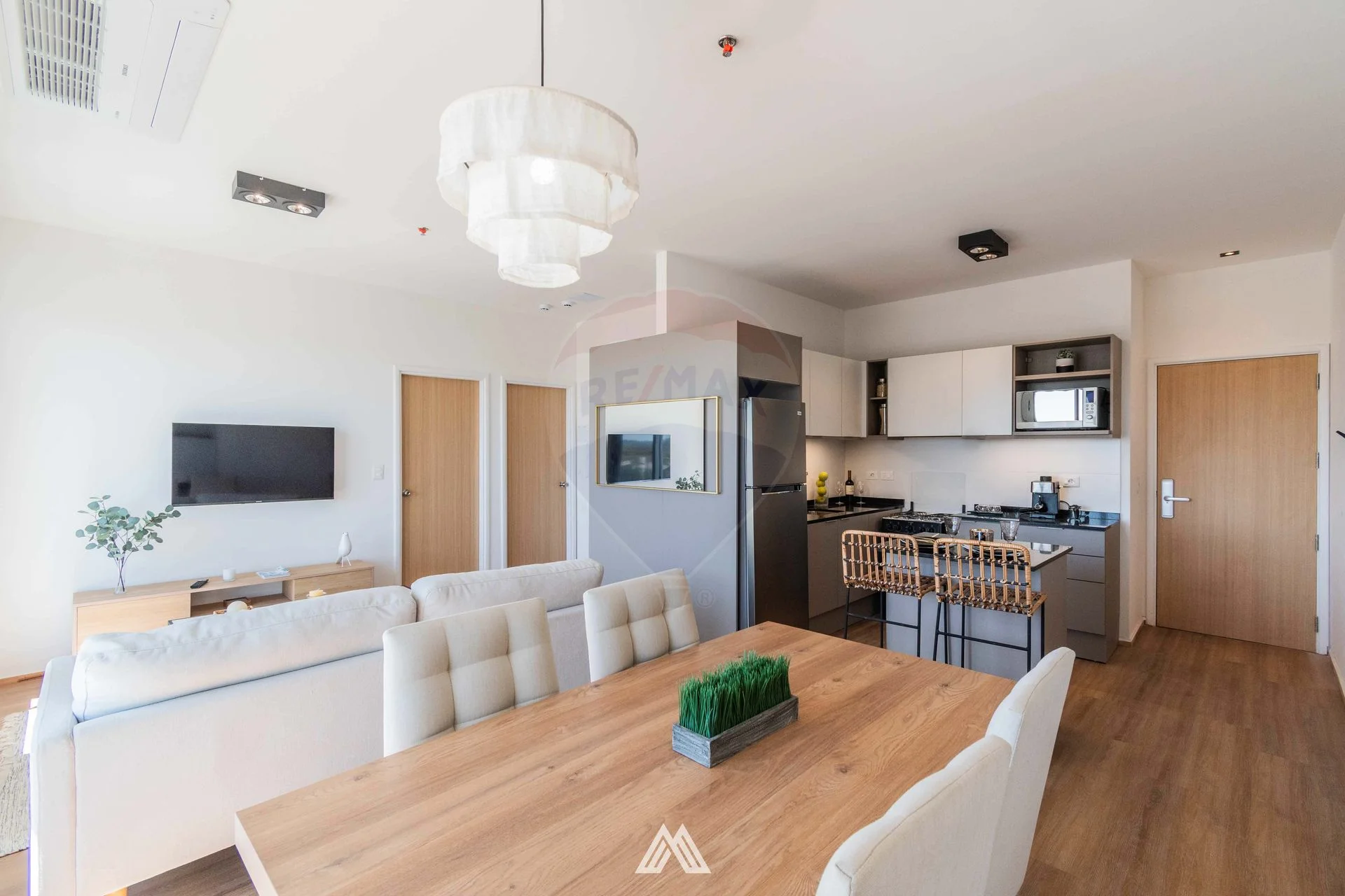 Tiene 2 dormitorios grandes y con placares integrados mas un living comedor amplio y un baño completo. tambien tiene espacio para el lavarropas y el aire acondicionado integrado en cada habitación.