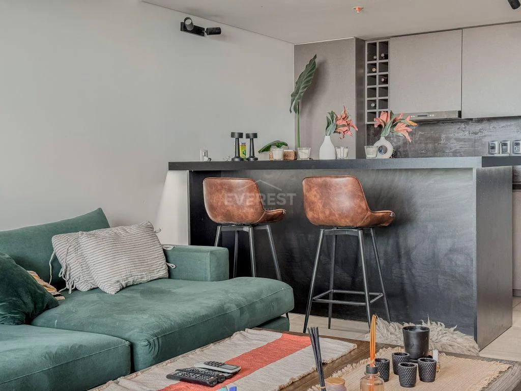 Amplio living comedor con cocina integrada, moderna y con gran capacidad de guardado.