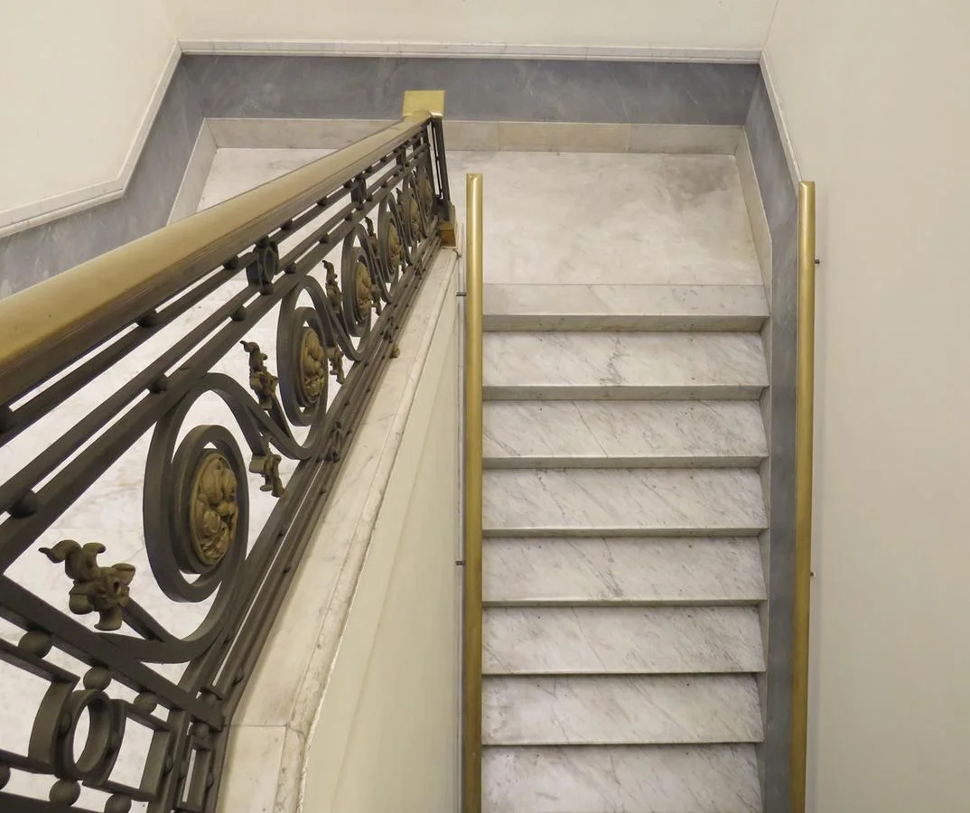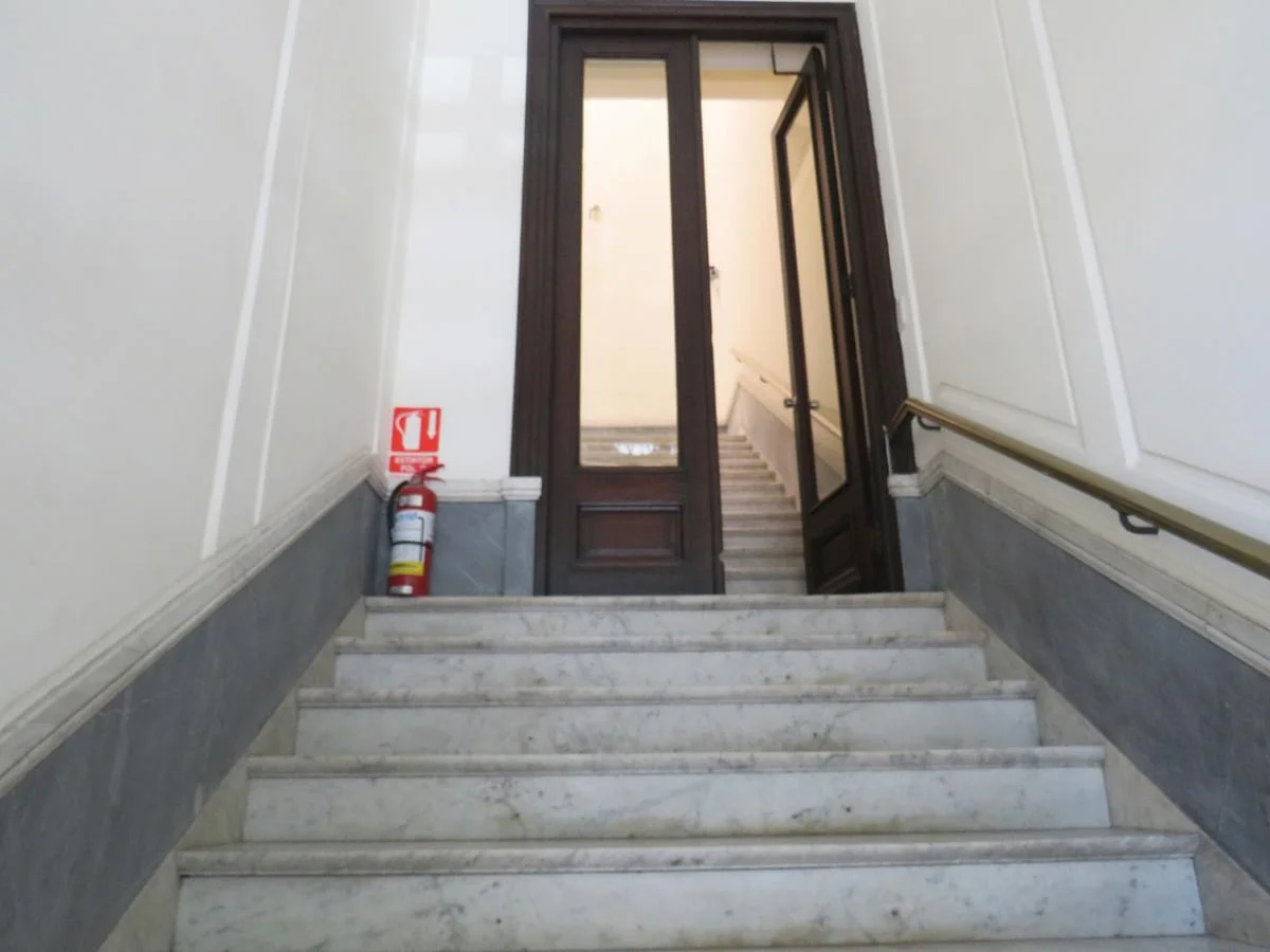 Acceso por amplia escalera de mármol con magnífico vitreau.