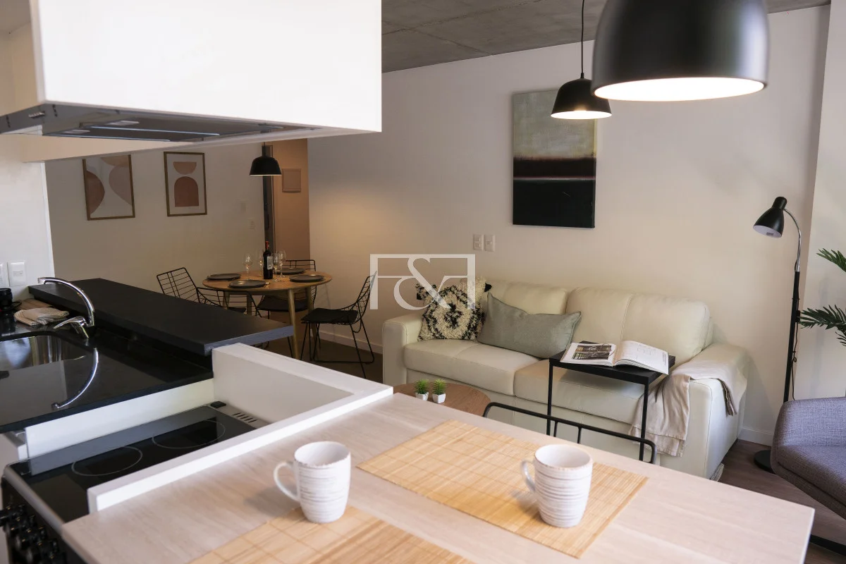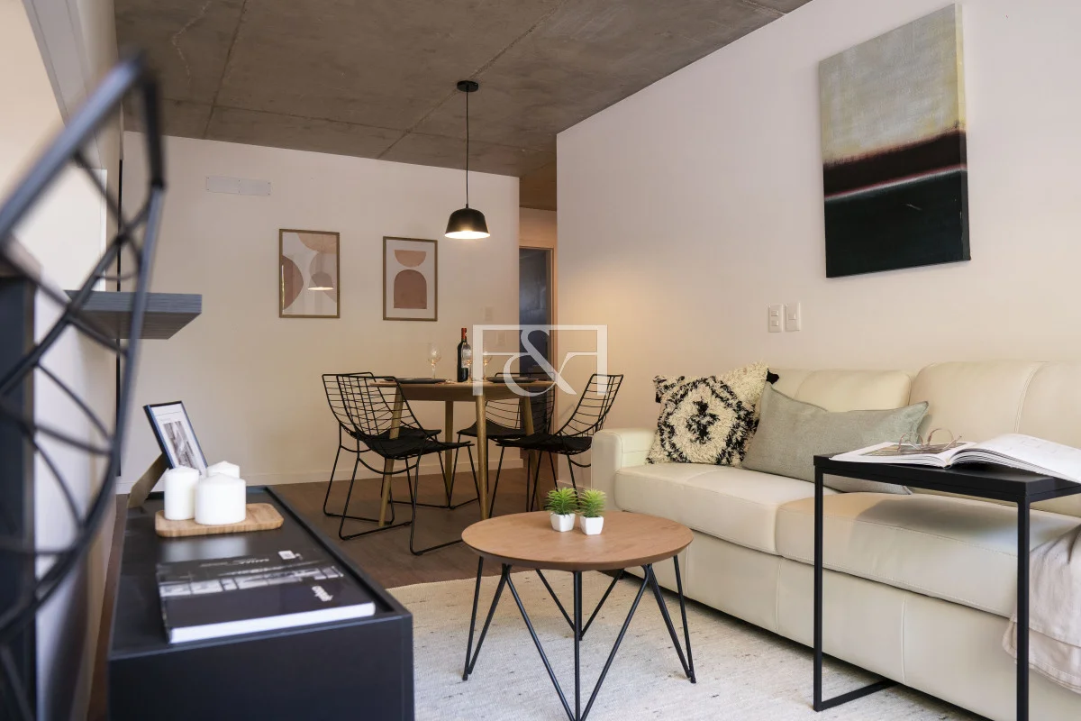 Distribución: Living-comedor con salida a balcón al frente, cocina semi-integrada con placares, dos dormitorios cómodos y baño completo
