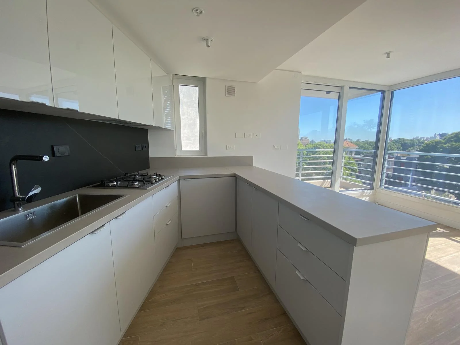 Apartamento premium de 2 dormitorios en el piso 6, equipado con horno, anafe y campana de extracción, muebles bajo y sobre mesada. Pisos de porcelanato simil madera. Losa radiante por caldereta a gas sectorizada individual, AA en Living y dormitorios.
