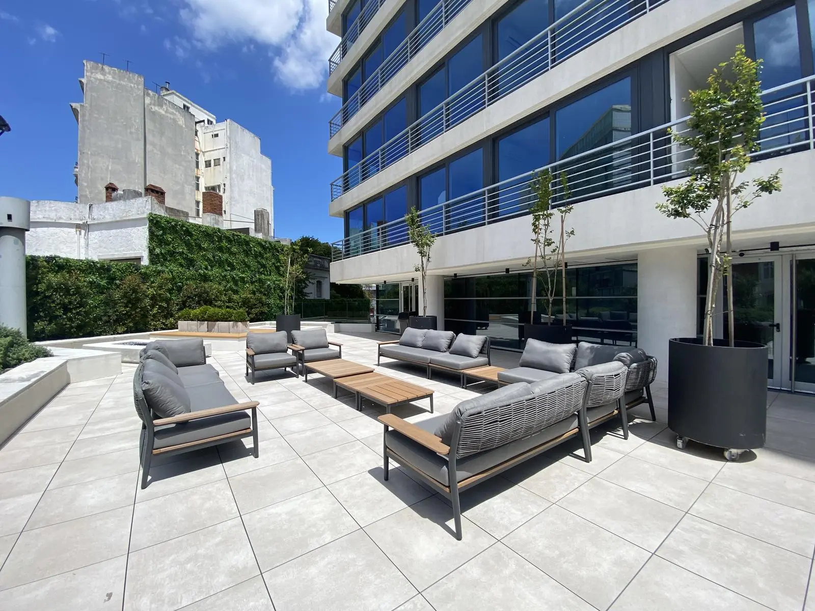 Apartamento premium de 1 Dormitorios en el piso 17, equipado con horno, anafe y campana de extracción, muebles bajo y sobre mesada. Pisos de porcelanato simil madera. Losa radiante por caldereta a gas sectorizada individual.