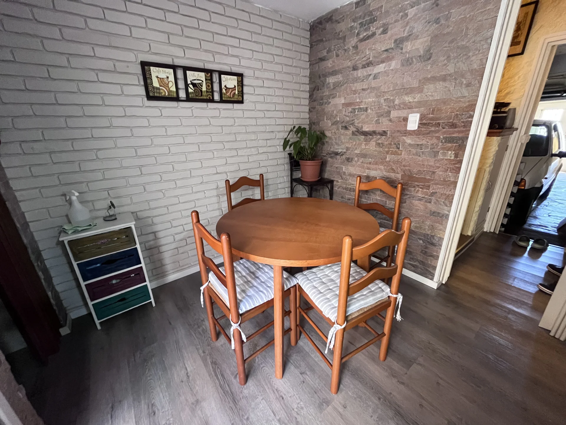 En la planta alta se encuentran tres dormitorios con placar, un baño principal a nuevo, balcón al frente y terraza al contrafrente, lo cual proporciona variedad de ambientes de uso. Las habitaciones cuentan con placares empotrados y buena distribución de luz natural. El acceso a la planta alta se realiza por escalera central, lo que permite una conexión fluida entre ambos niveles.