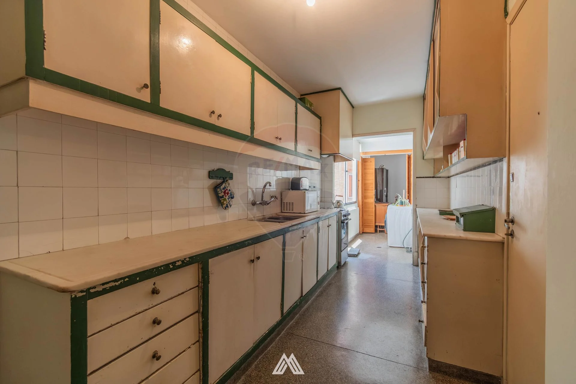Excelente planta de 113 m2, 107 internos y 6 de terraza, muy luminoso y amplio. Cuenta con gran living comedor con entrada principal y gran ventanal al frente, hacia Juan Ma. Perez. Cuenta con 3 dormitorios, el principal de gran tamaño también al frente hacia Juan Ma.Perez, y los otros dos, también de buenas dimensiones tienen ventana al contrafrente, que es amplio amplio y ventilado, uno de los dormitorios cuenta con balcón. Tiene dos baños de época en funcionamiento y una cocina de gran tamaño, también de época, que tiene habitación y baño de servicio, con zona para lavar y secar ropa. también cuenta con entrada de servicio.