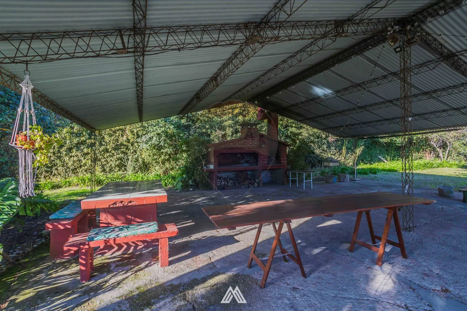 El predio está equipado con cámaras de seguridad, y la construcción general es sólida y espaciosa.