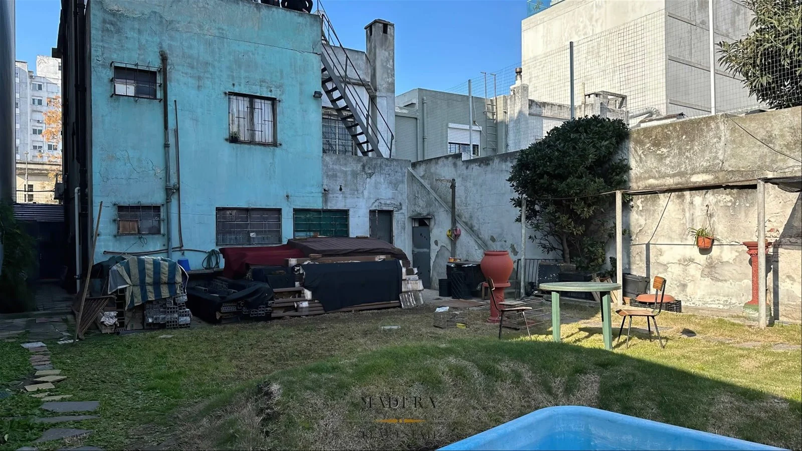 Escalera hacia el fondo de la propiedad