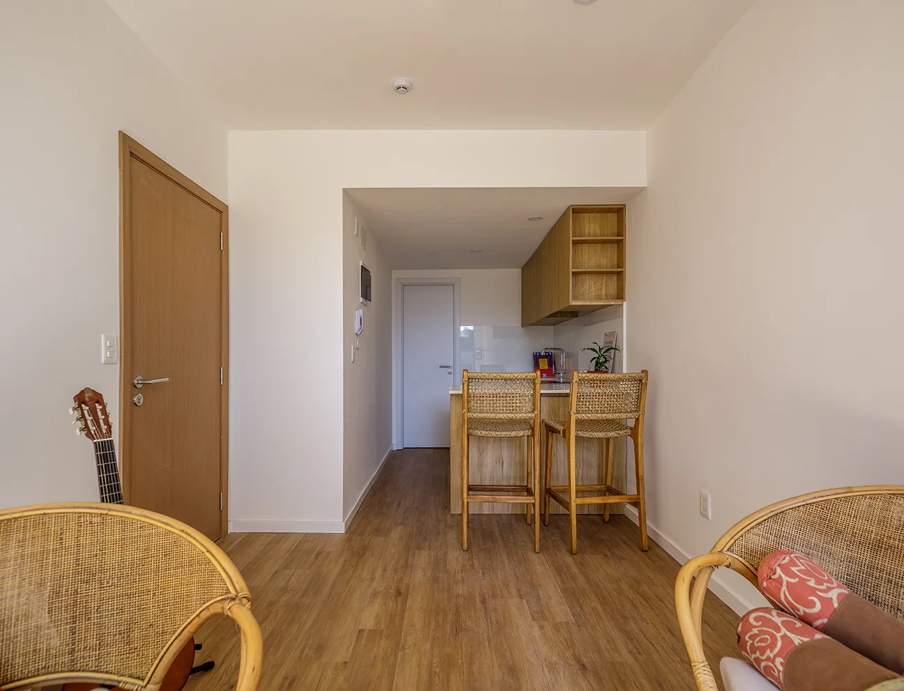 Monoambiente a estrenar en Tres Cruces combina diseño moderno con practicidad. El ambiente principal es amplio, con pisos de primera calidad y ventanales de doble vidrio orientados al norte, lo que asegura luminosidad natural y eficiencia térmica durante todo el año.