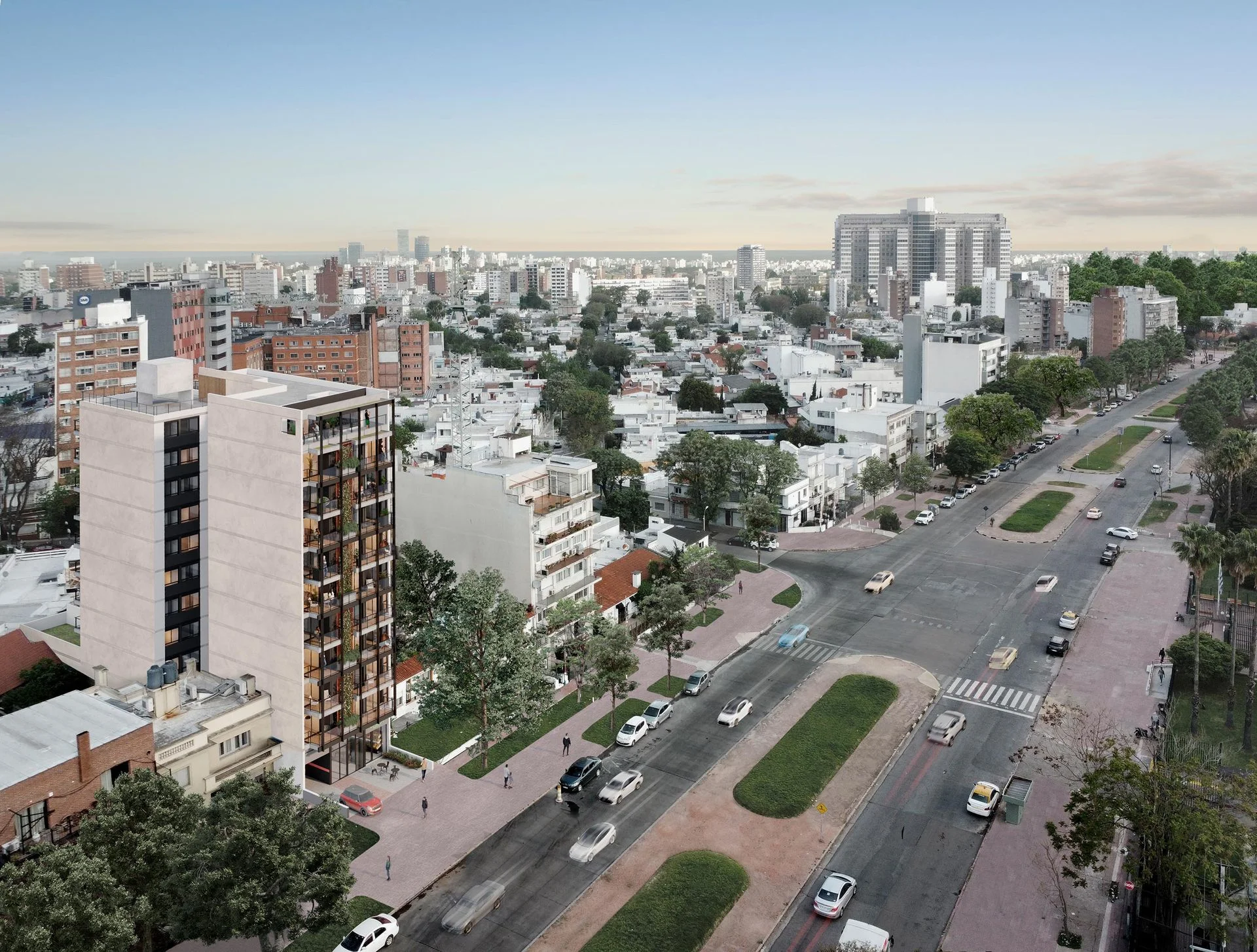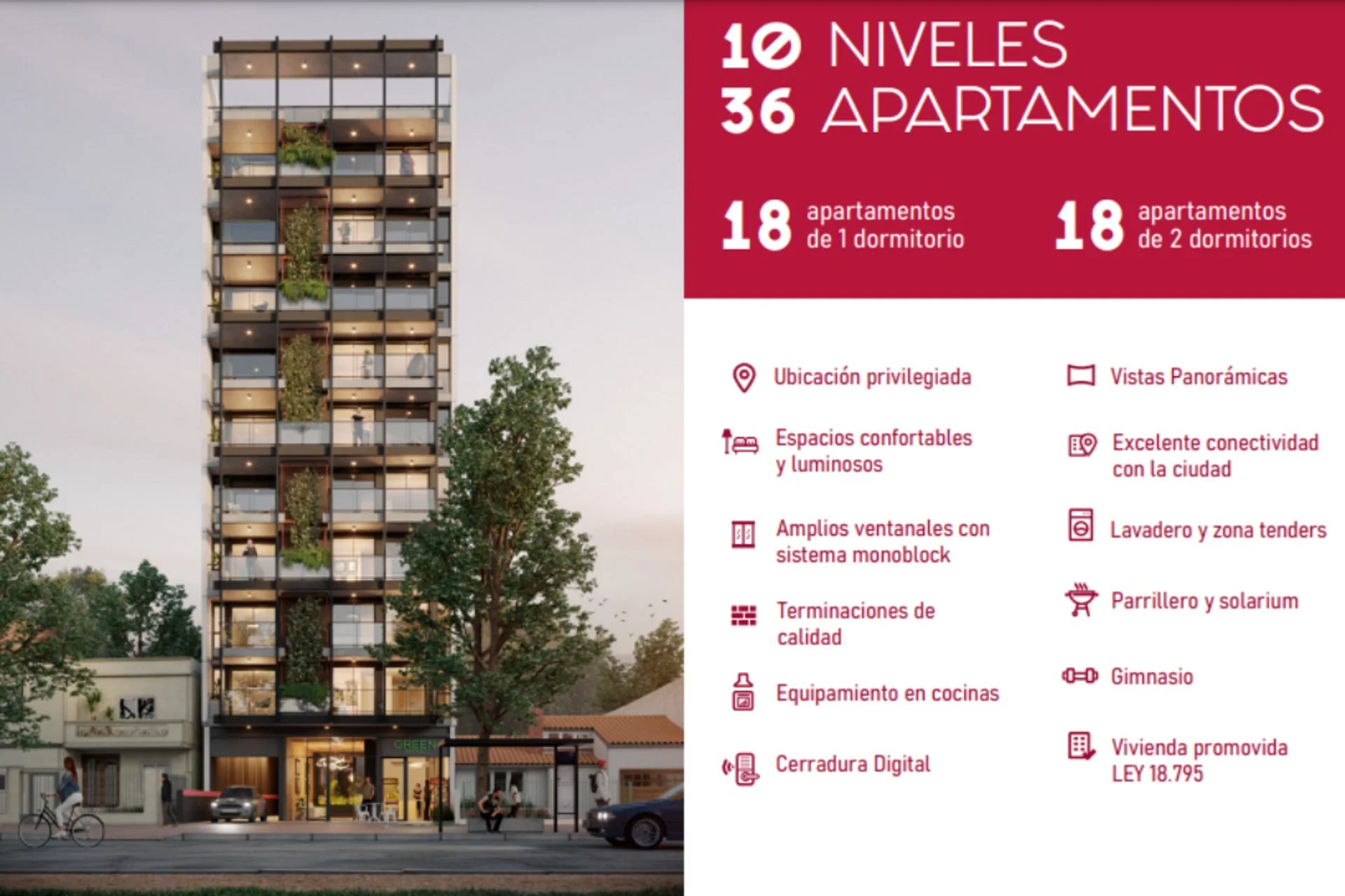 El proyecto consta de 3.500 m2 totales. El edificio está compuesto por 36 unidades, de las cuales 18 son unidades de 1 dormitorio y 18 son unidades de 2 dormitorios. Esta compuesto por 10 niveles más planta baja y un subsuelo.