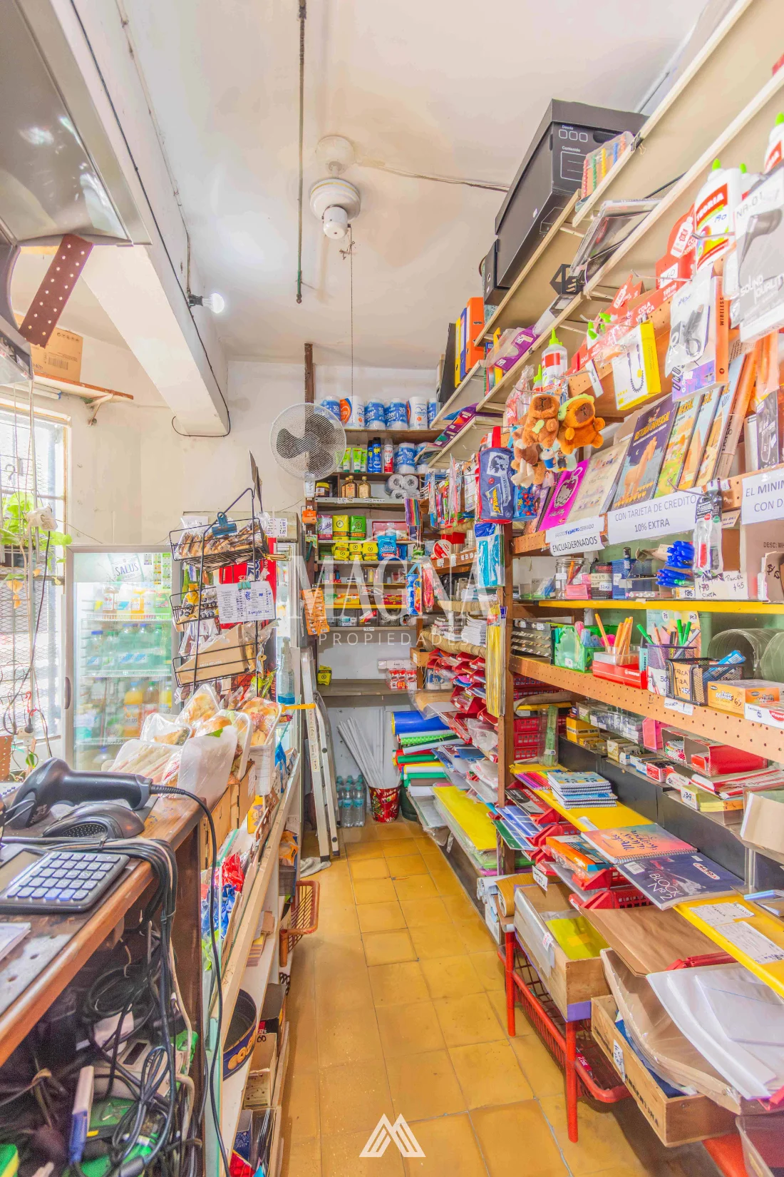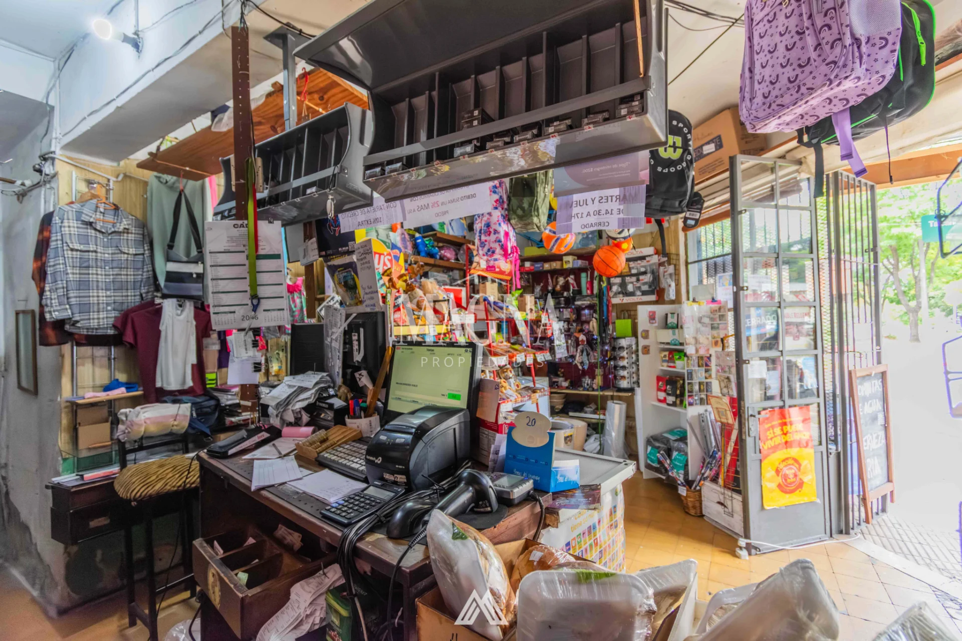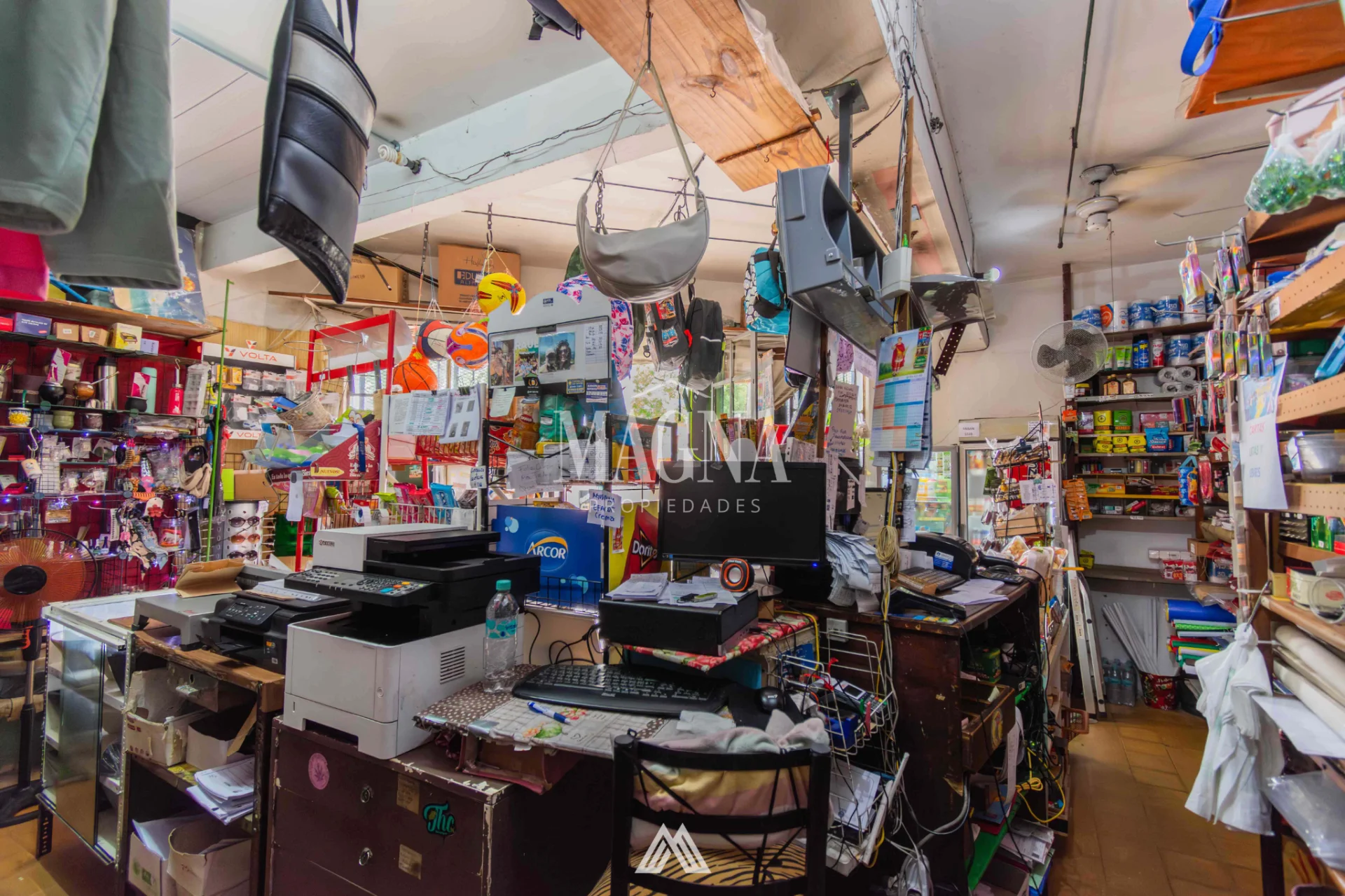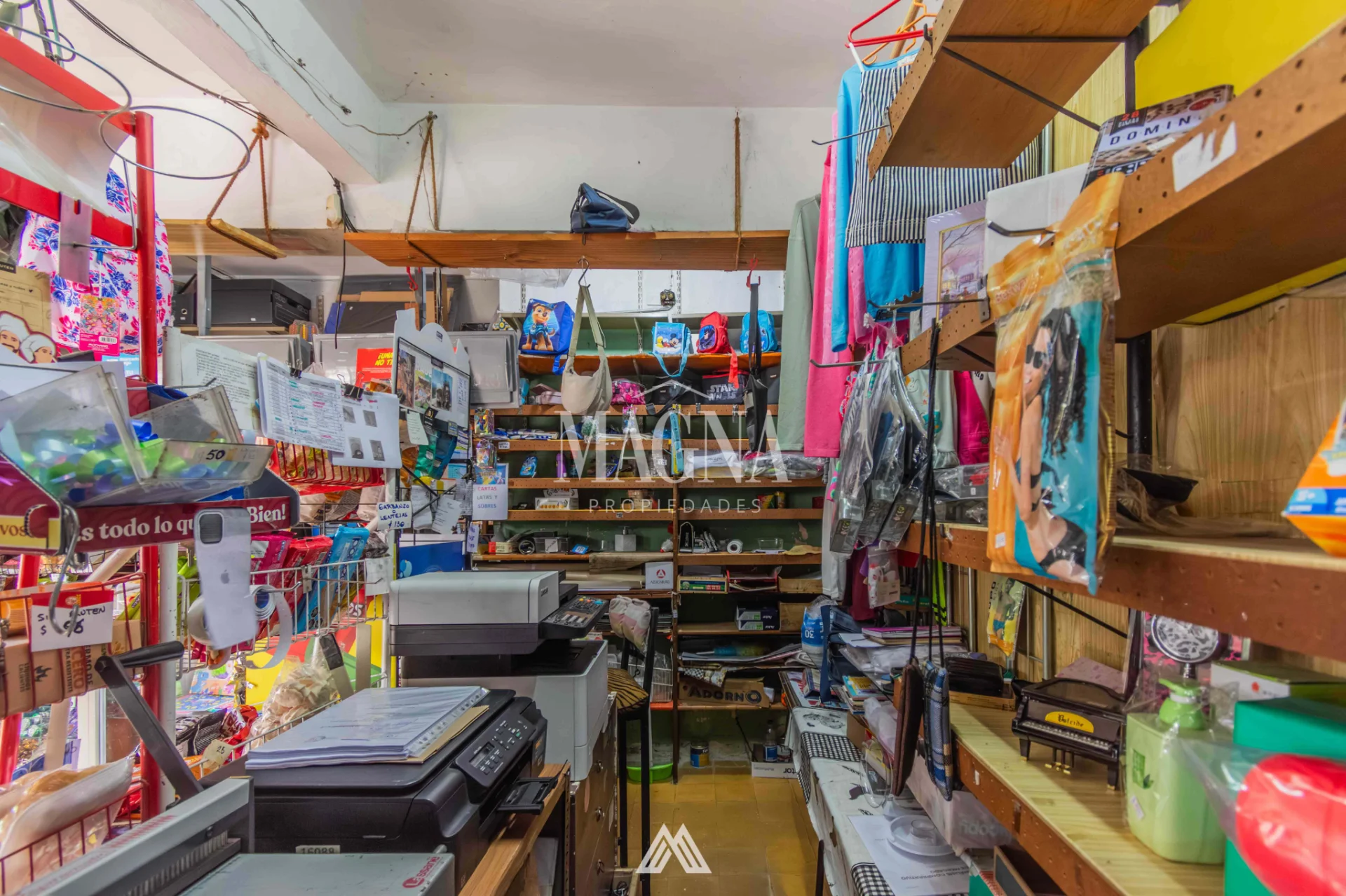 Equipamiento completo: mostrador, estanterías, góndolas, computadora, impresora multifunción, caja, banca de Quiniela y recarga de STM.