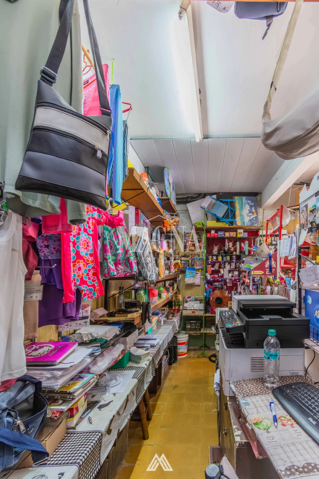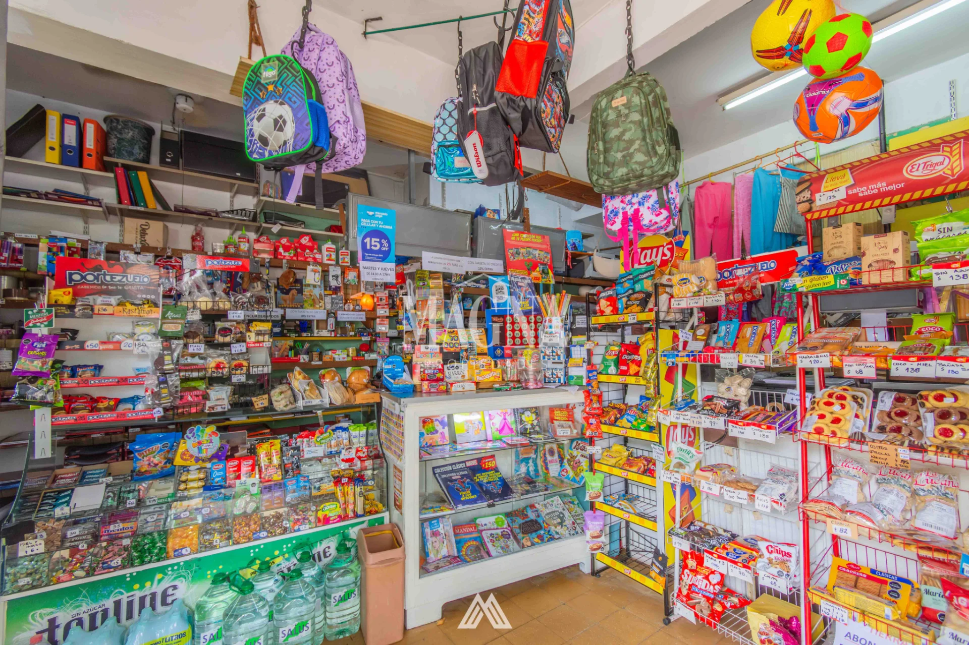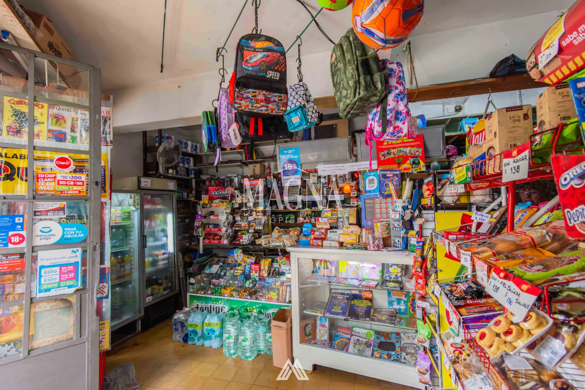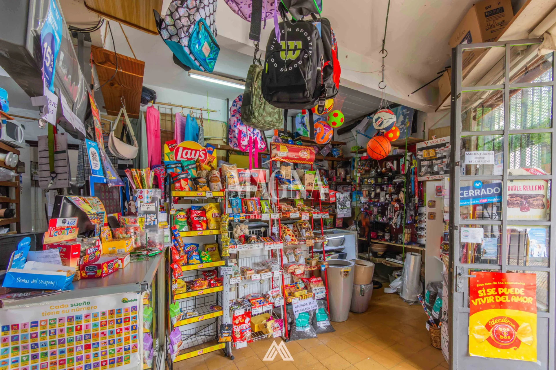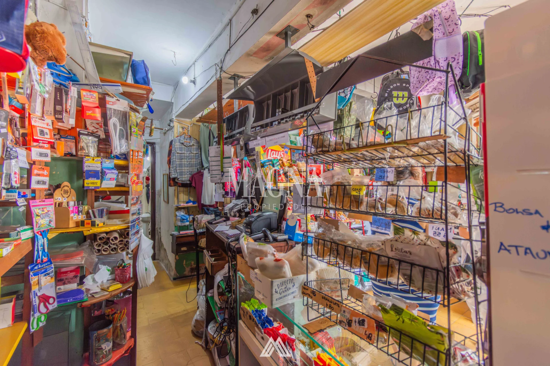 Equipamiento completo: mostrador, estanterías, góndolas, computadora, impresora multifunción, caja, banca de Quiniela y recarga de STM.