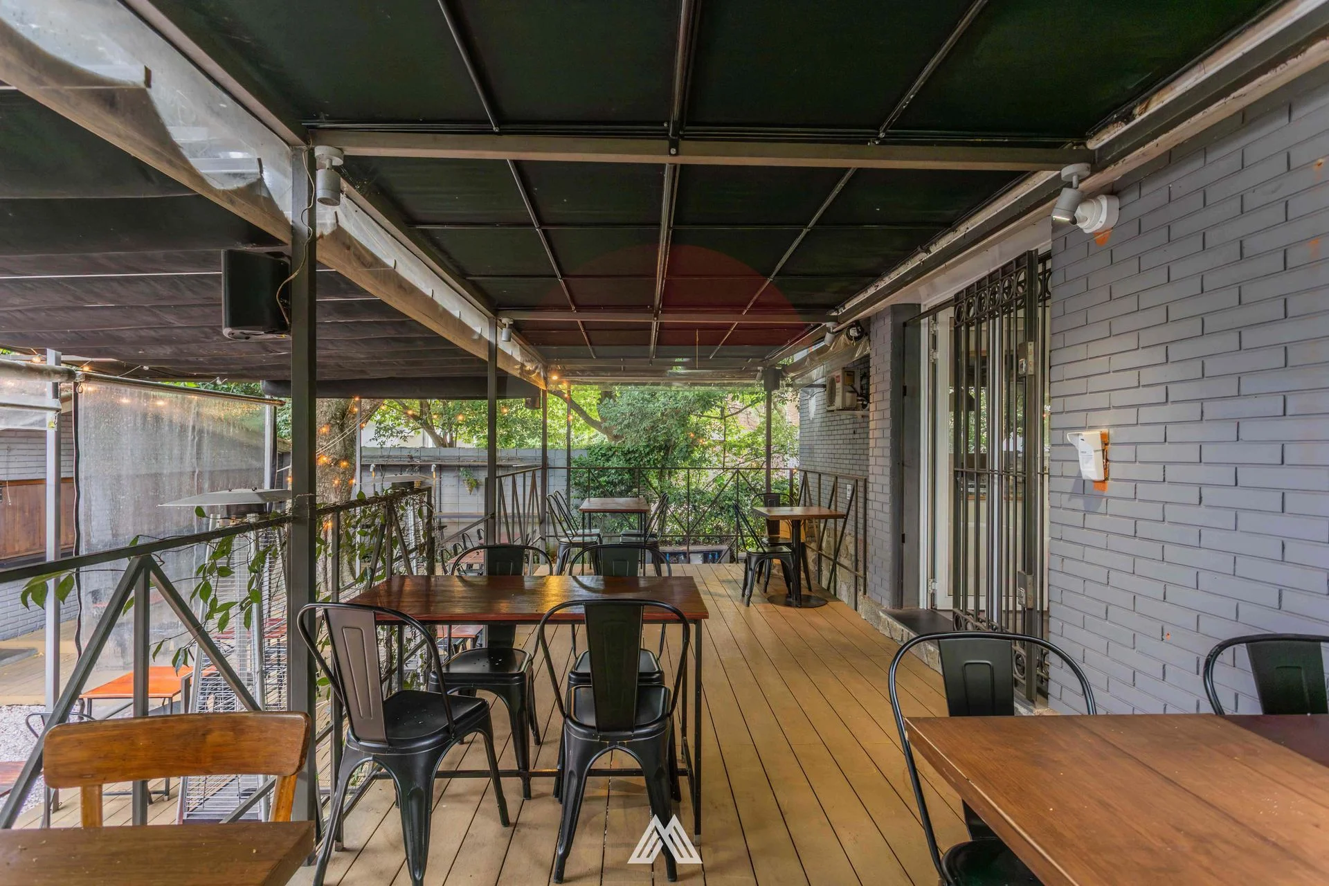 Contiguo a la cafetería el local cuenta con amplio patio espectacular equipado con zona de barra y parrillero, ideal para: