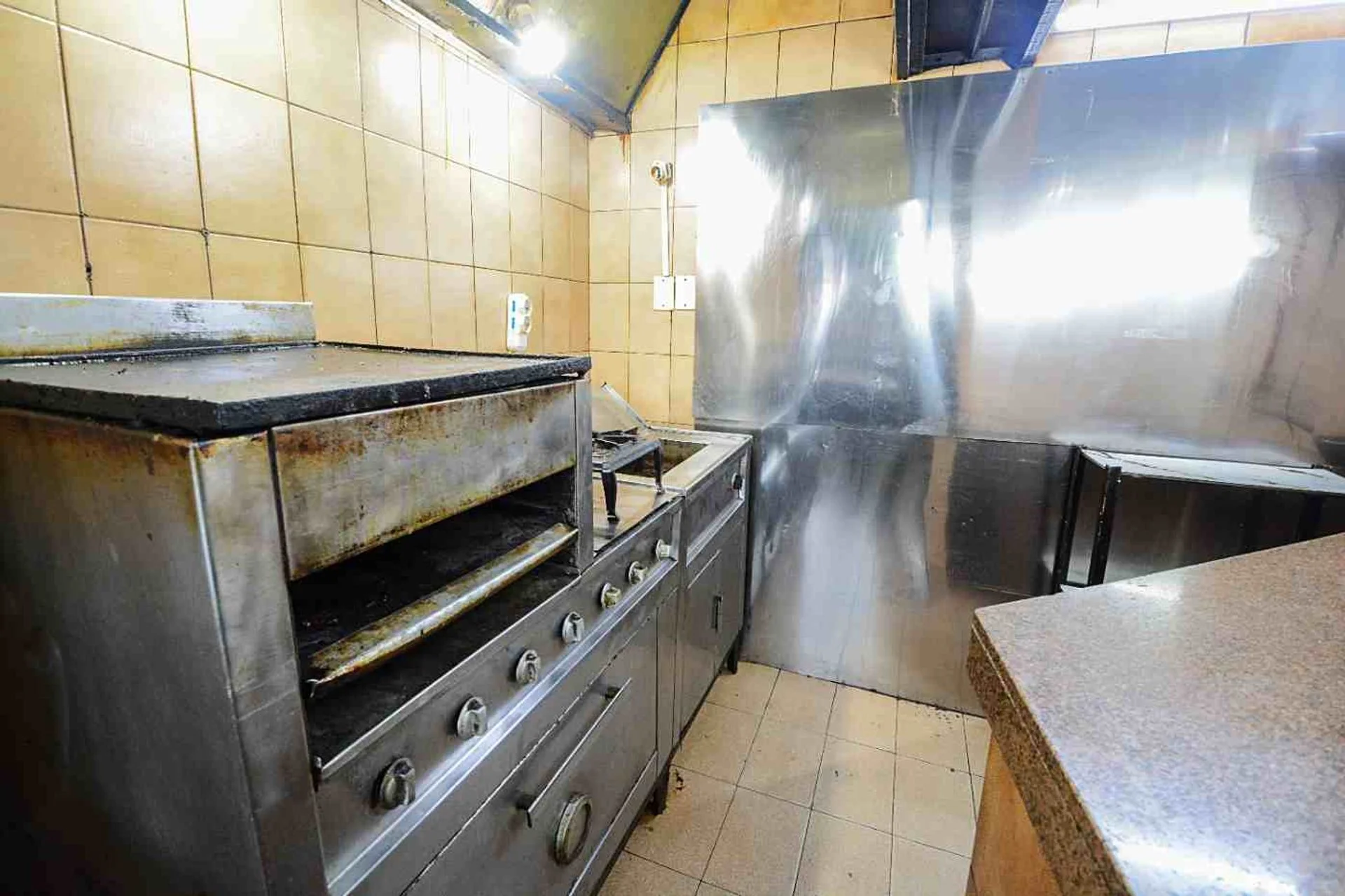 -Barra con bacha y sector de cocina, que incluye horno pizzero, cocina con freidora y bachas.