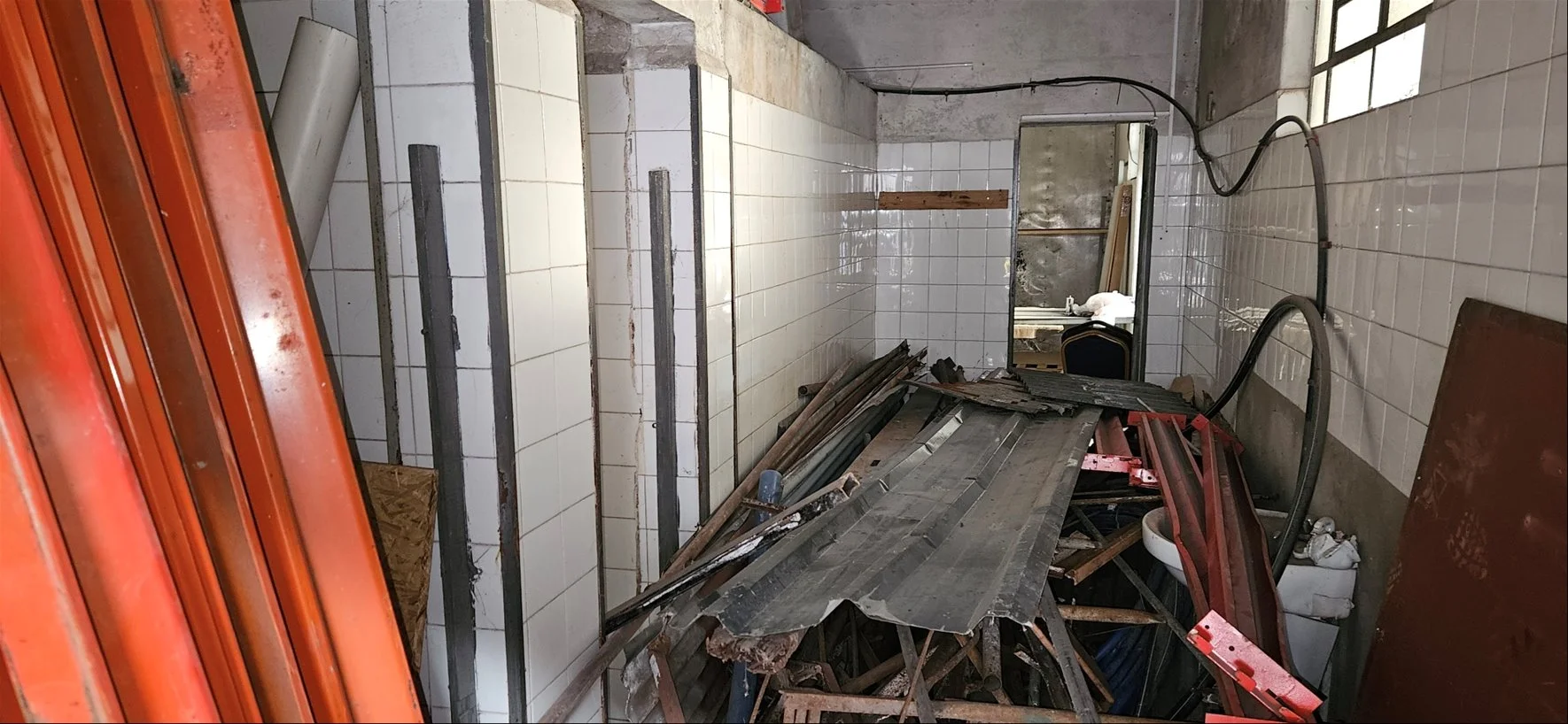 Vestuarios, oficinas y baños para actualizar según necesidades.