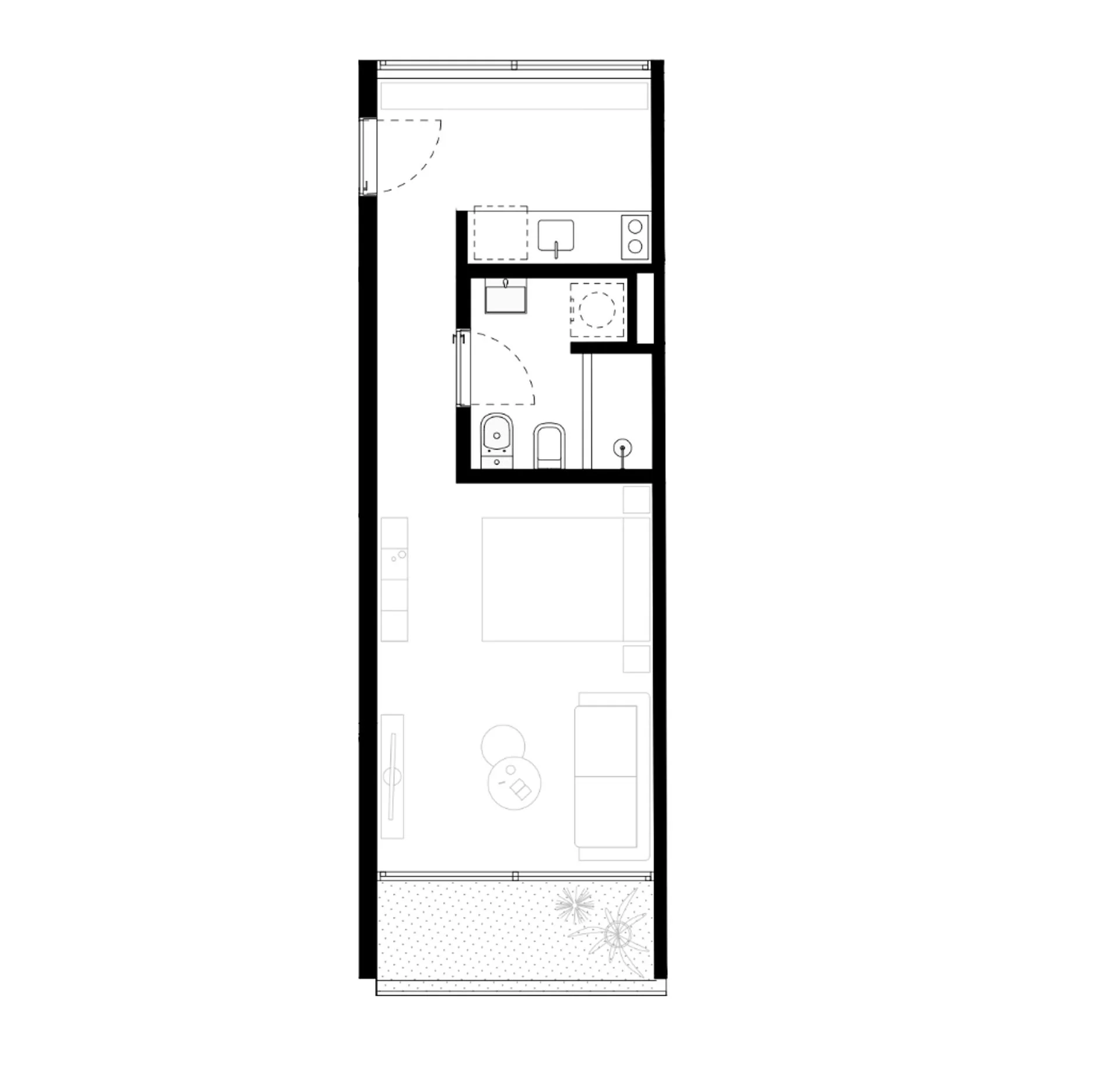 La unidad publicada es un monoambiente en el 4to piso, de 30m2 con hermosa terraza que da al frente del edificio.