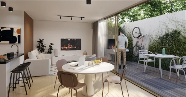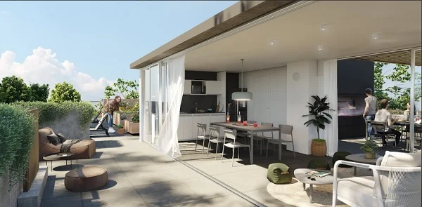 Descubra un apartamento de venta a estrenar, moderno y luminoso, diseñado para combinar confort y funcionalidad en un edificio de 5 pisos. Esta vivienda multifamiliar se integra armónicamente con la naturaleza gracias a sus balcones ajardinados, que ofrecen vistas panorámicas y llenan de serenidad cada rincón, ideal para aquellos que buscan un estilo de vida contemporáneo. El apartamento cuenta con amplias zonas de estar y una cocina abierta, perfectamente integradas para crear un ambiente ideal para la vida moderna. Disfrute de accesos directos a una espaciosa terraza equipada con zona de barbacoa/asador y cocineta, ideal para reuniones sociales o momentos de relax. Un baño completo y closets bien distribuidos completan este espacio versátil. Entre sus características clave, destacan los pisos en madera y una cocina integral moderna. La propiedad garantiza una excelente ventilación natural, proporcionando un ambiente fresco y agradable todo el año. Disfrute de un toque de naturaleza con el jardín/patio que forma parte de su diseño exterior. Una oportunidad única para adquirir un inmueble con diseño vanguardista y acabados de alta calidad por U$S 119.000.