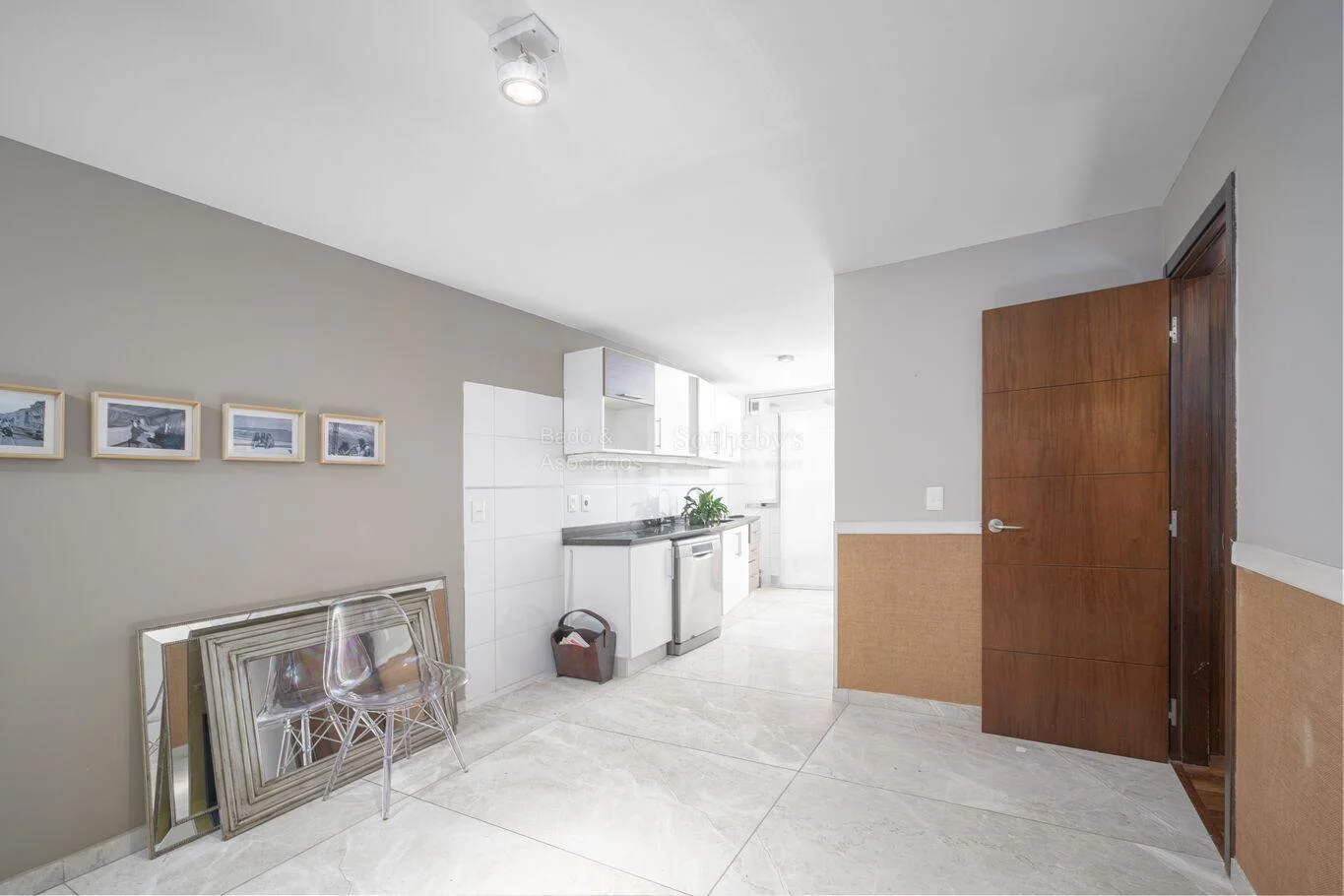 El área social se completa con un amplio estar con cocina integrada, totalmente remodelada, de diseño contemporáneo y excelentes terminaciones, además de práctica despensa independiente.