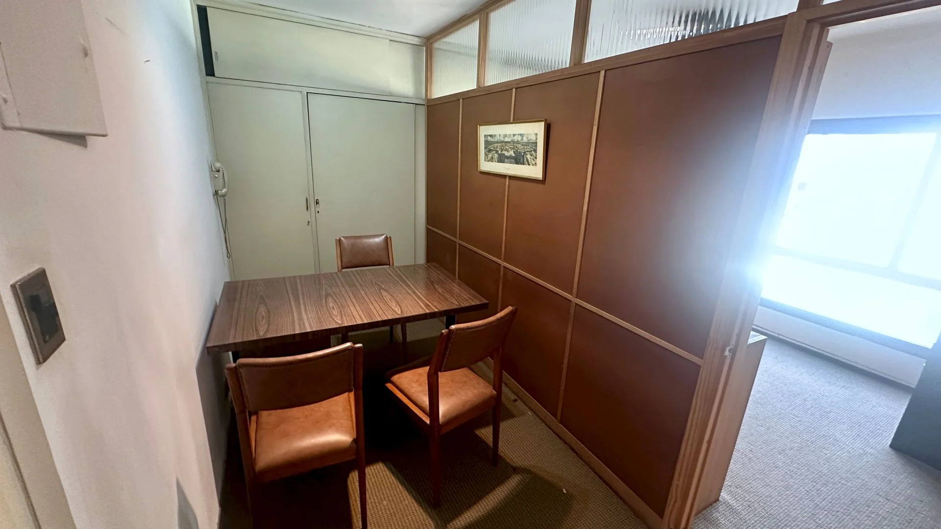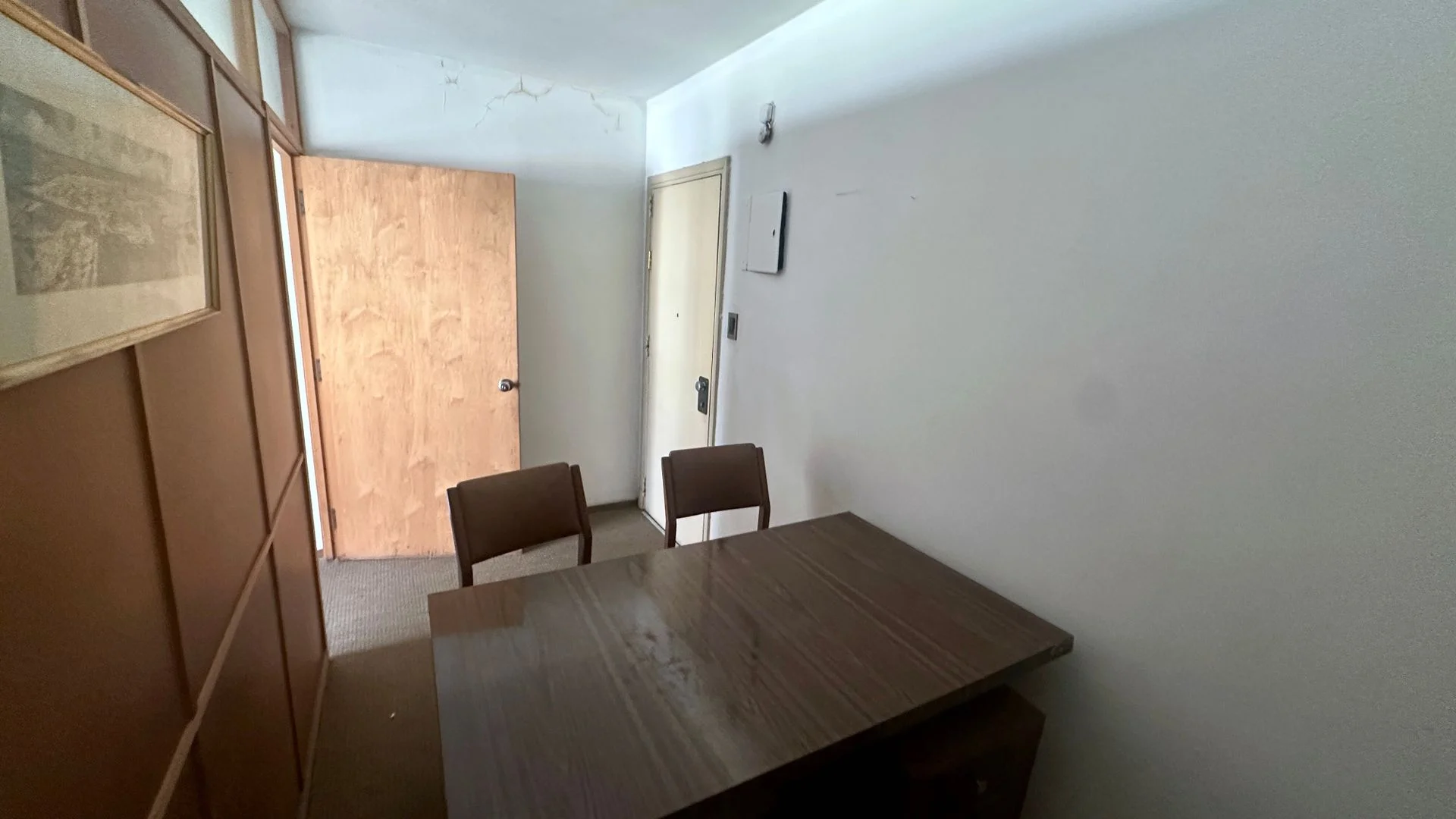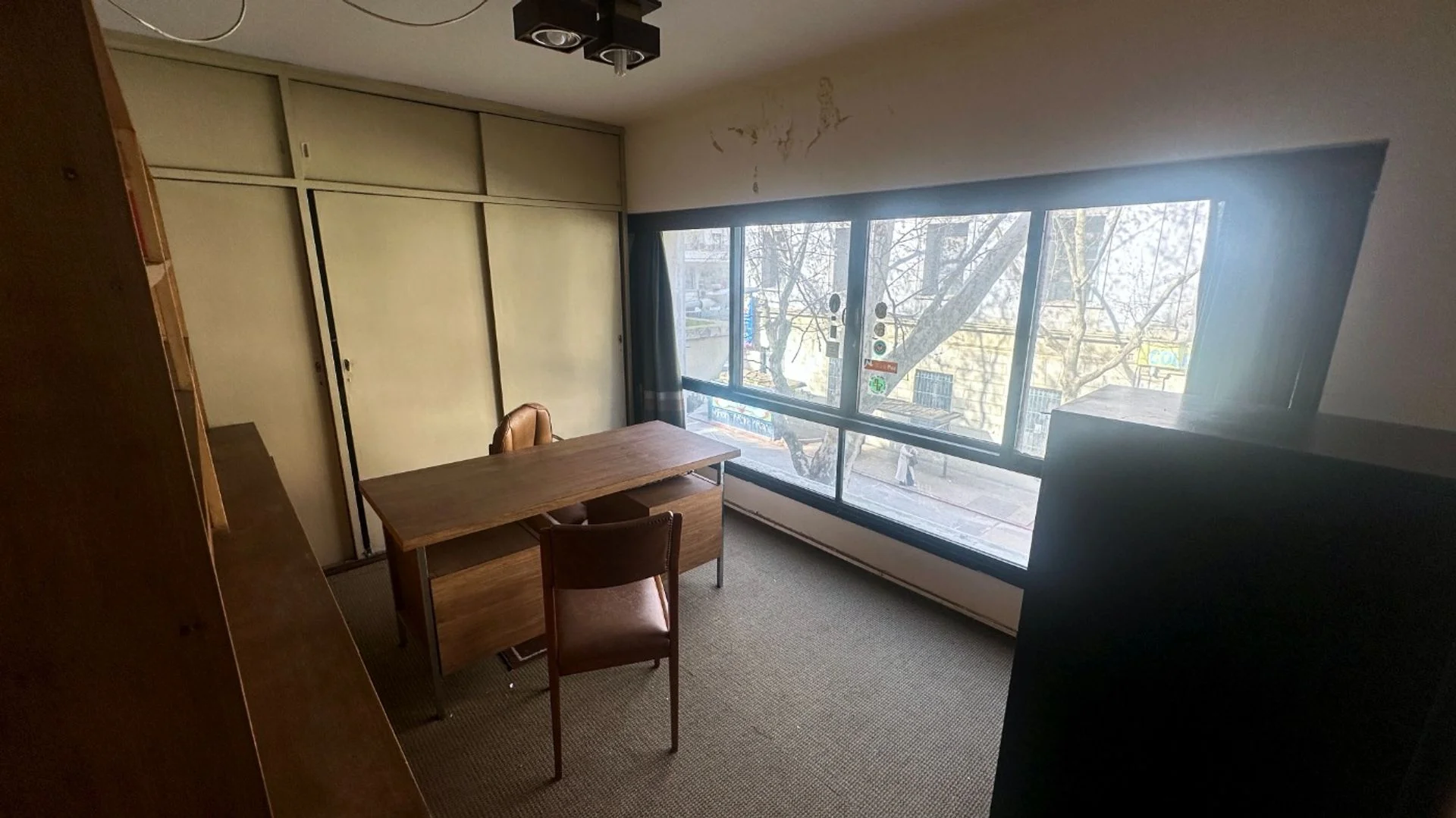 Los pisos son de moquete y la oficina cuenta con un gran ventanal que ofrece vista hacia la calle San José. Además, dispone de un amplio placard que recorre toda la pared, brindando un generoso espacio de almacenamiento. La puerta principal es blindada.