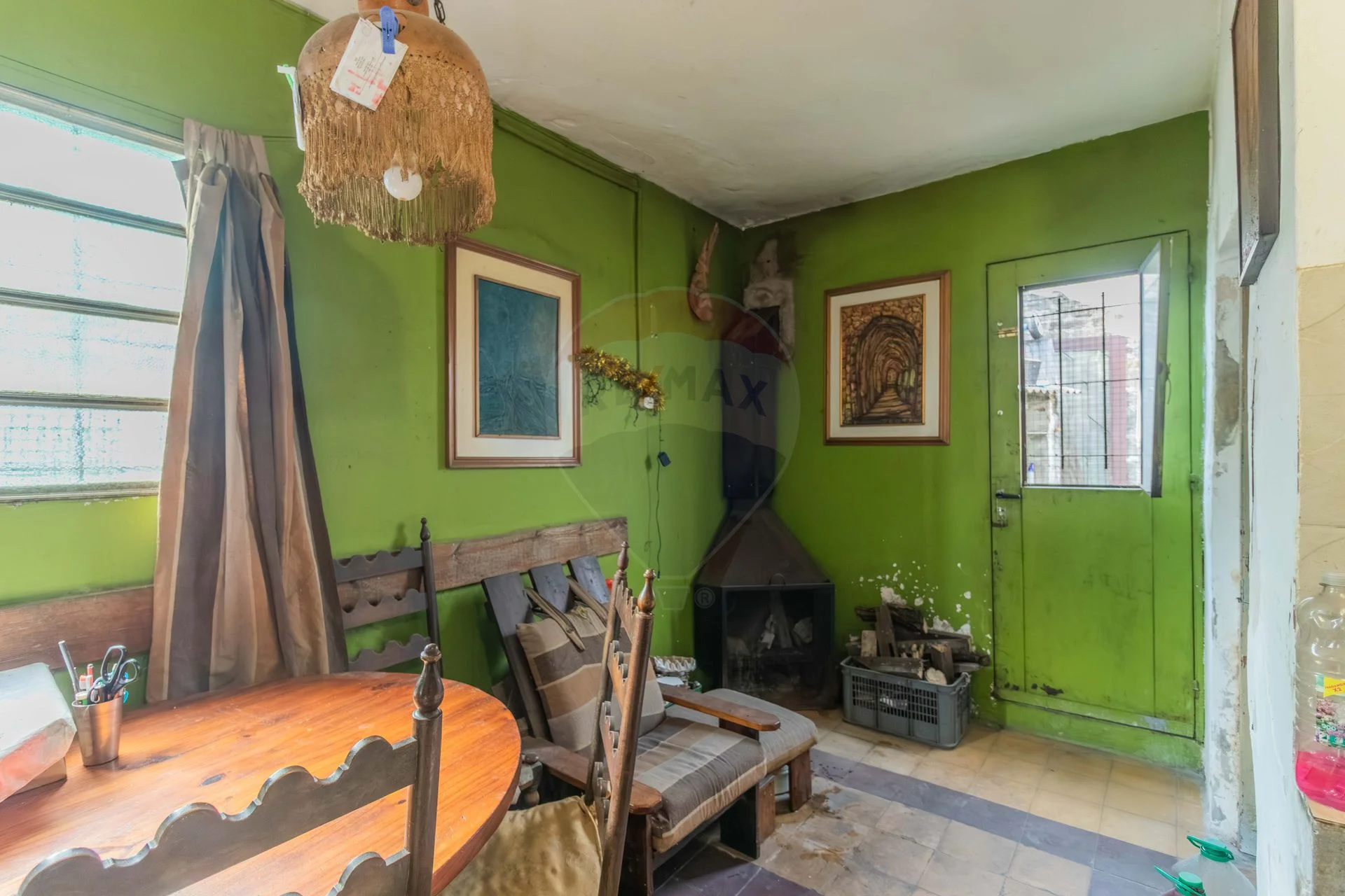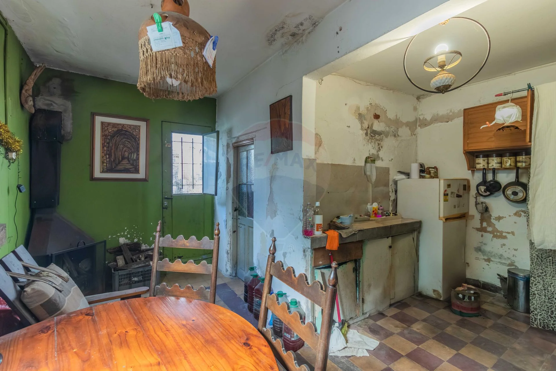 habitación ciega ventila al pasillo, cocina de época requiere arreglos, estufa a leña, un baño completo en buen estado con detalles, salida a pequeño patio.