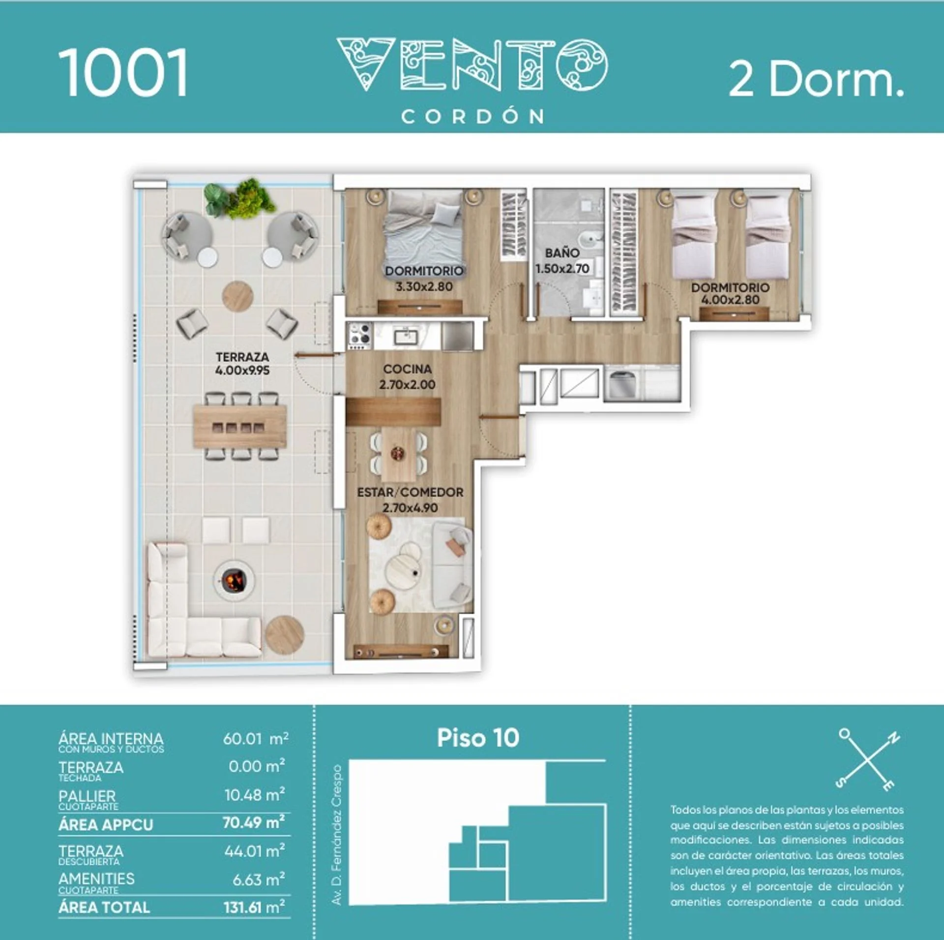 Además, el proyecto se desarrolla al amparo de la Ley de Vivienda Promovida (Ley 18.795), lo que brinda importantes beneficios fiscales para inversores: