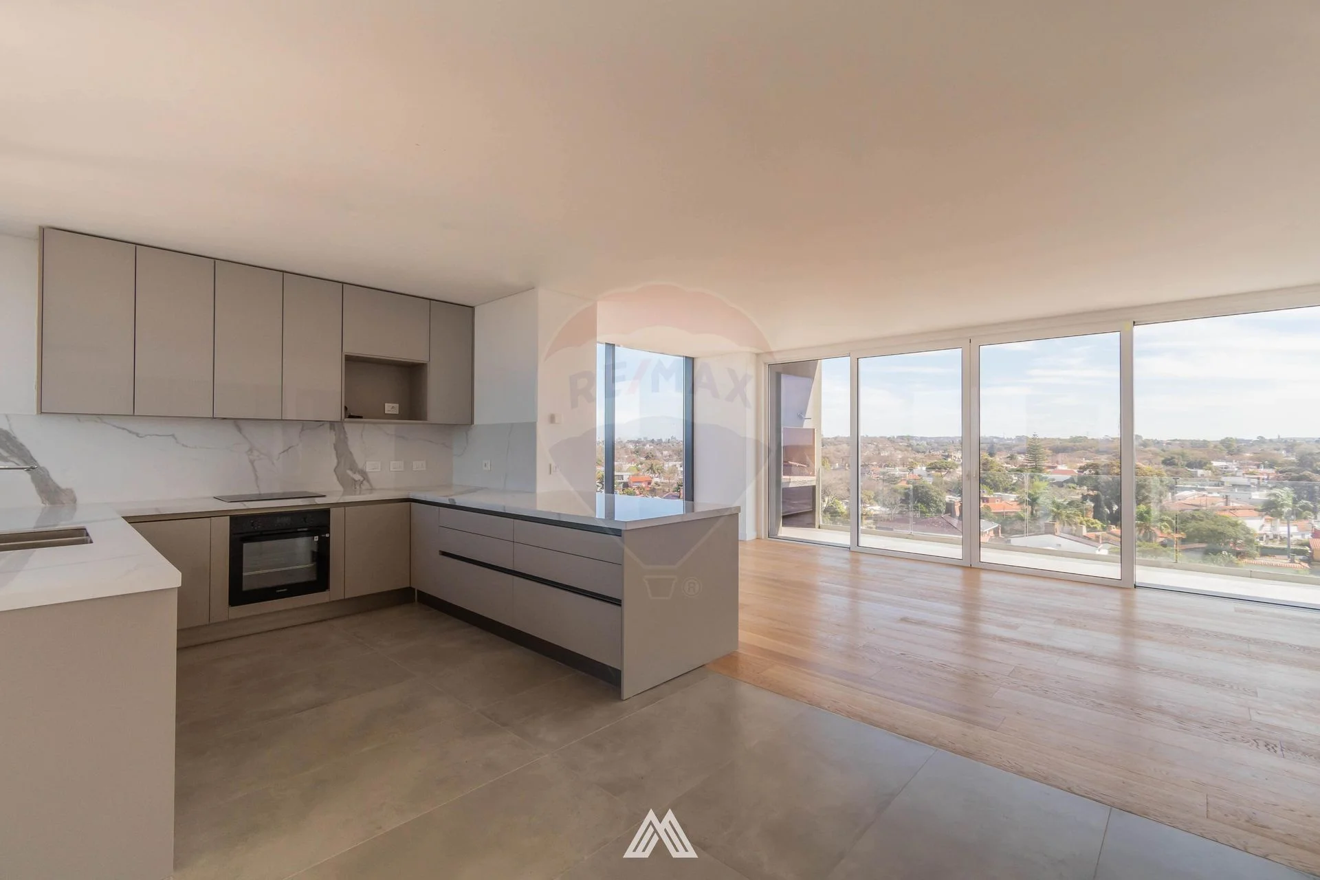 En el nivel principal (piso 7) se encuentra el hall de acceso con toilette, living comedor en esquina con fachada totalmente vidriada, proyectando el espacio hacia el mar.