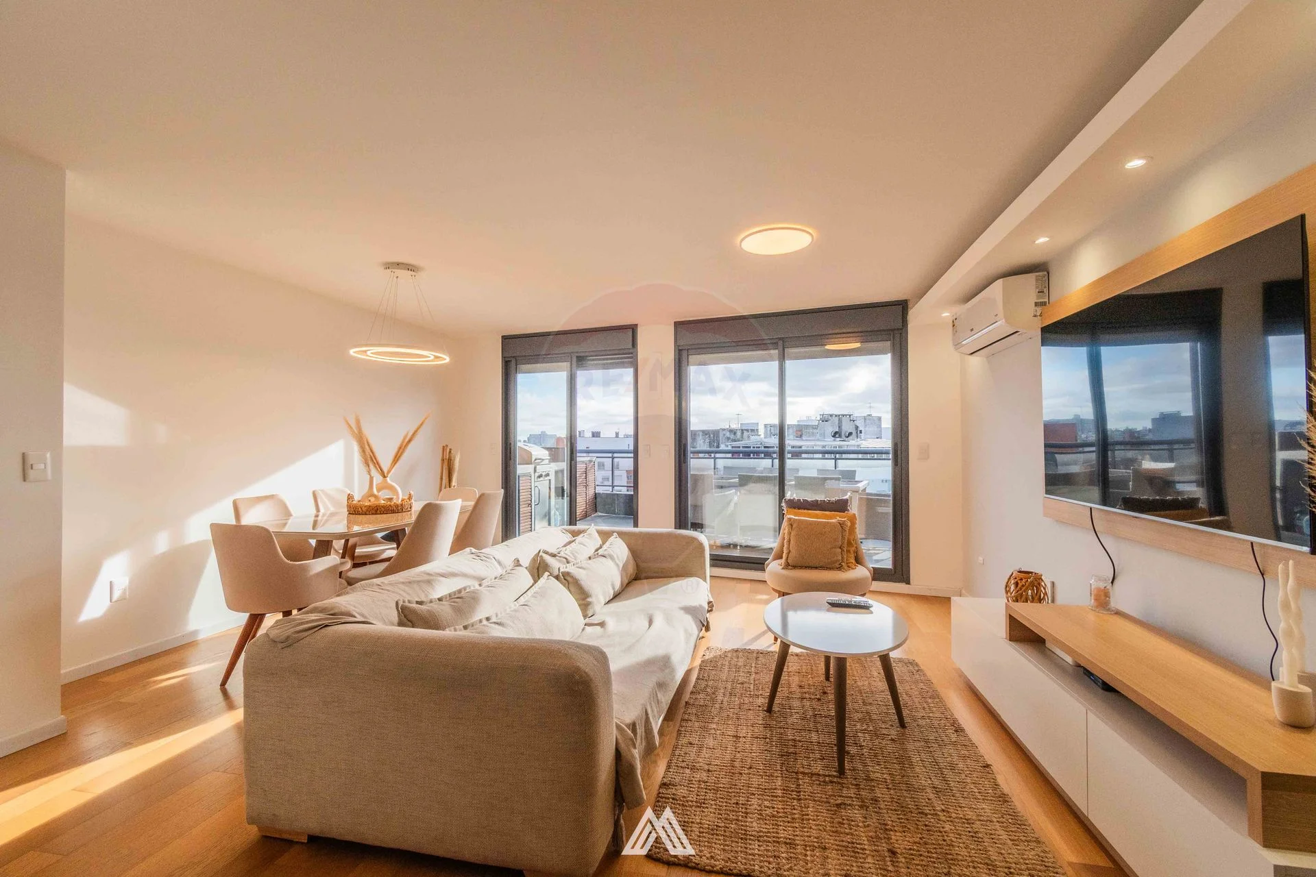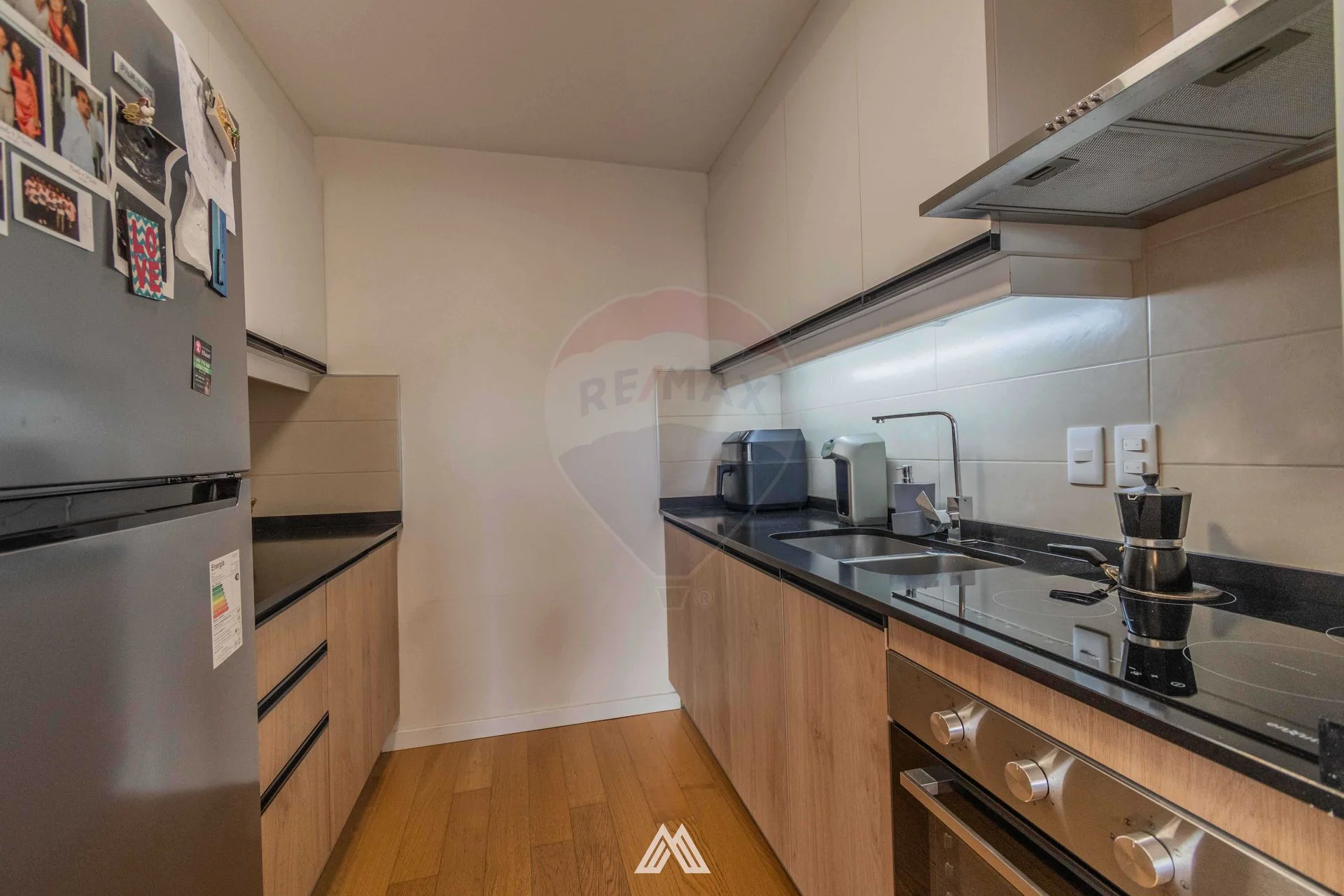 Living comedor apaisado con salida a cómodo balcón de 22 m2. Cocina amplia semi integrada con muebles sobre y bajo mesada. Incluye horno, extractor y anafe empotrados.