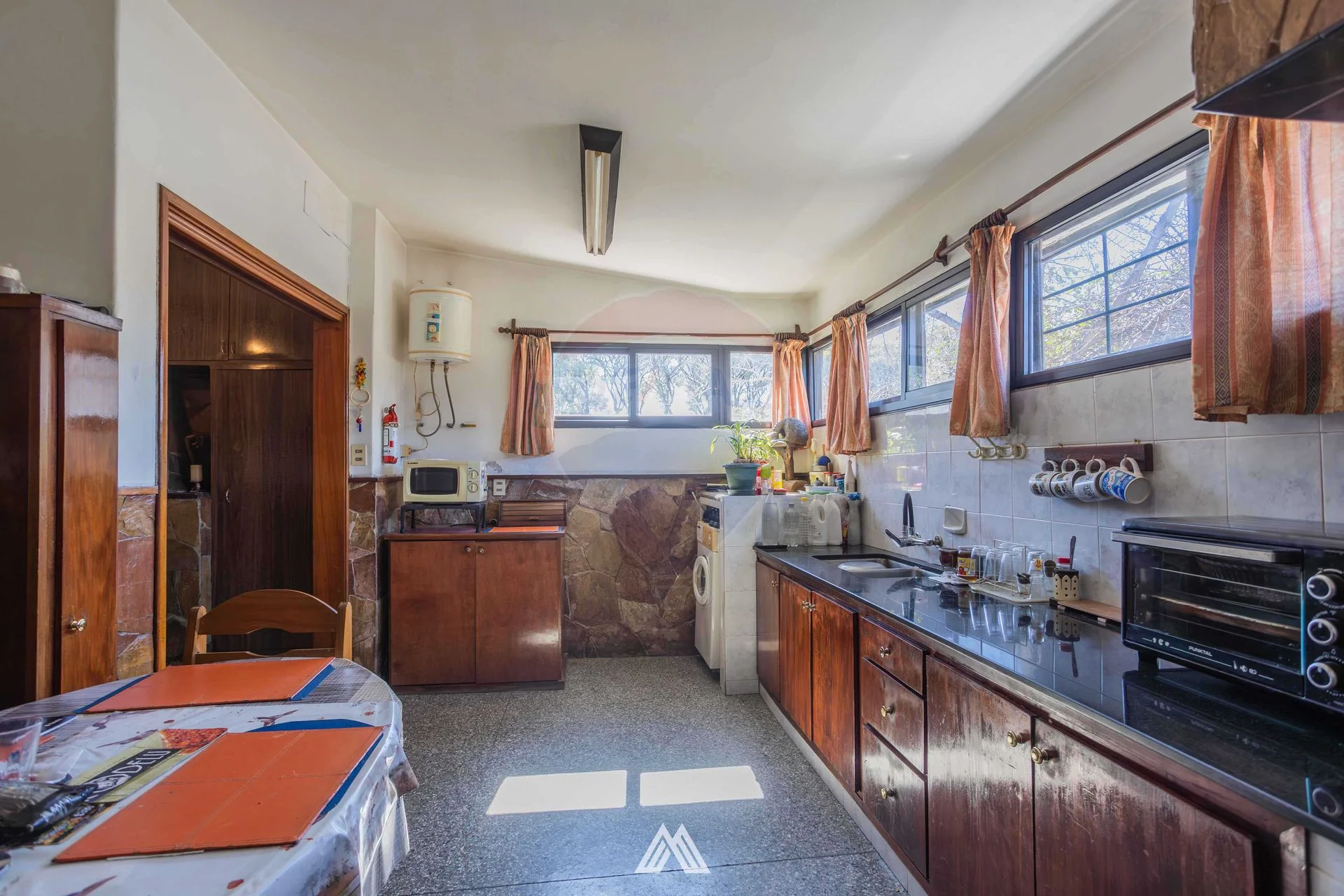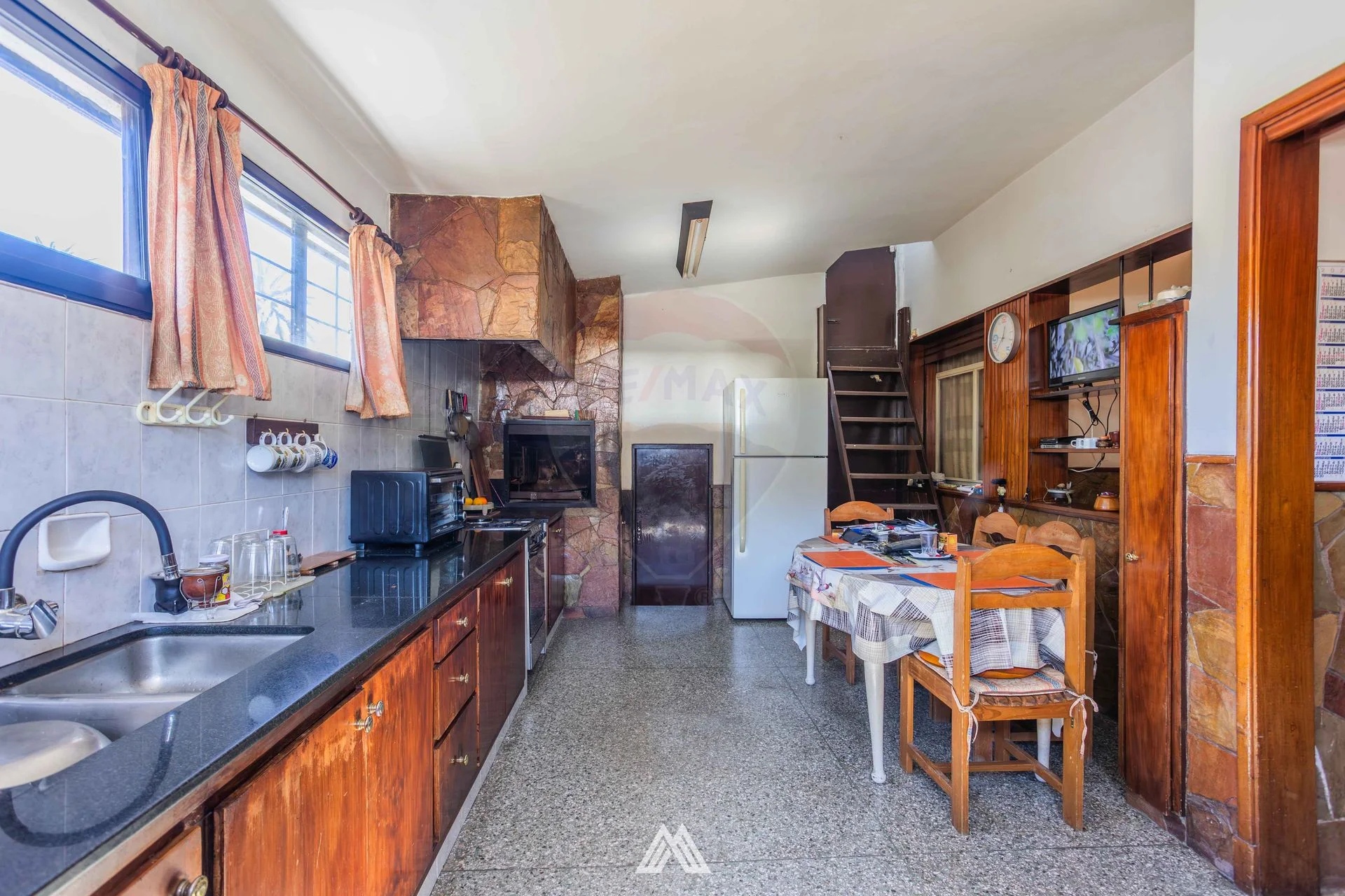 La cocina está integrada a un amplio comedor, equipada con una churrasquera y una estufa a leña. Además, la propiedad cuenta con un amplio deposito y una azotea.