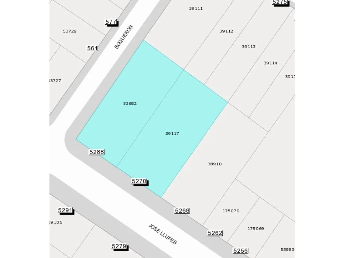 Padrón: 53682 - 649 m2 - Medida frente: 17.18 m -  Medida largo: 37.60 m y 37.94 m (Calle Boqueron)