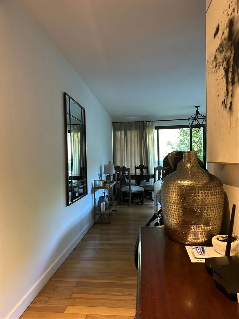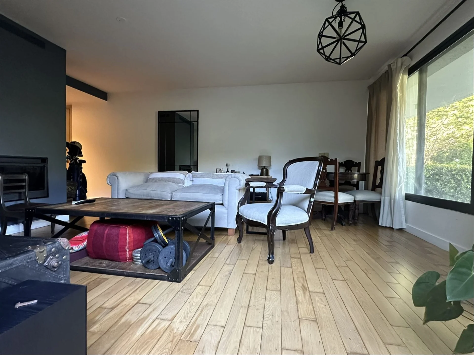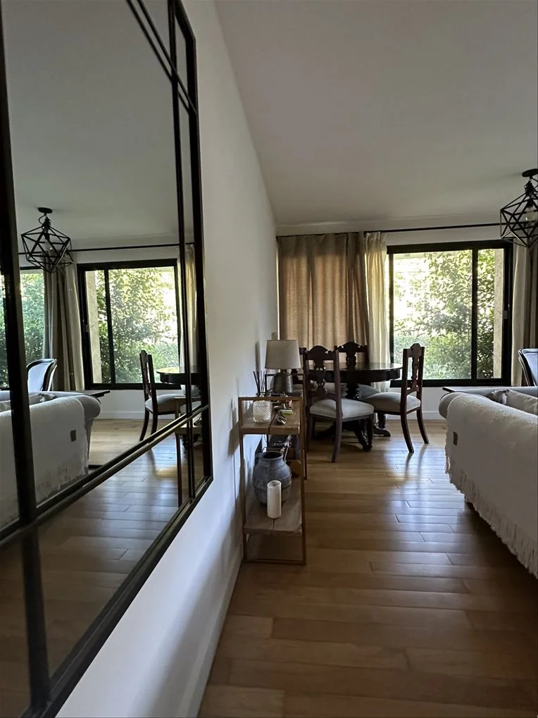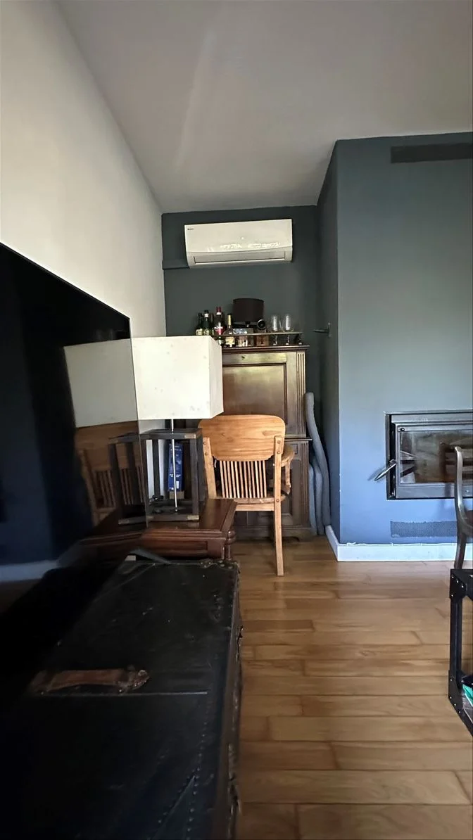 Living comedor con estufa de alto rendimiento, grandes ventanales, salida a jardin.