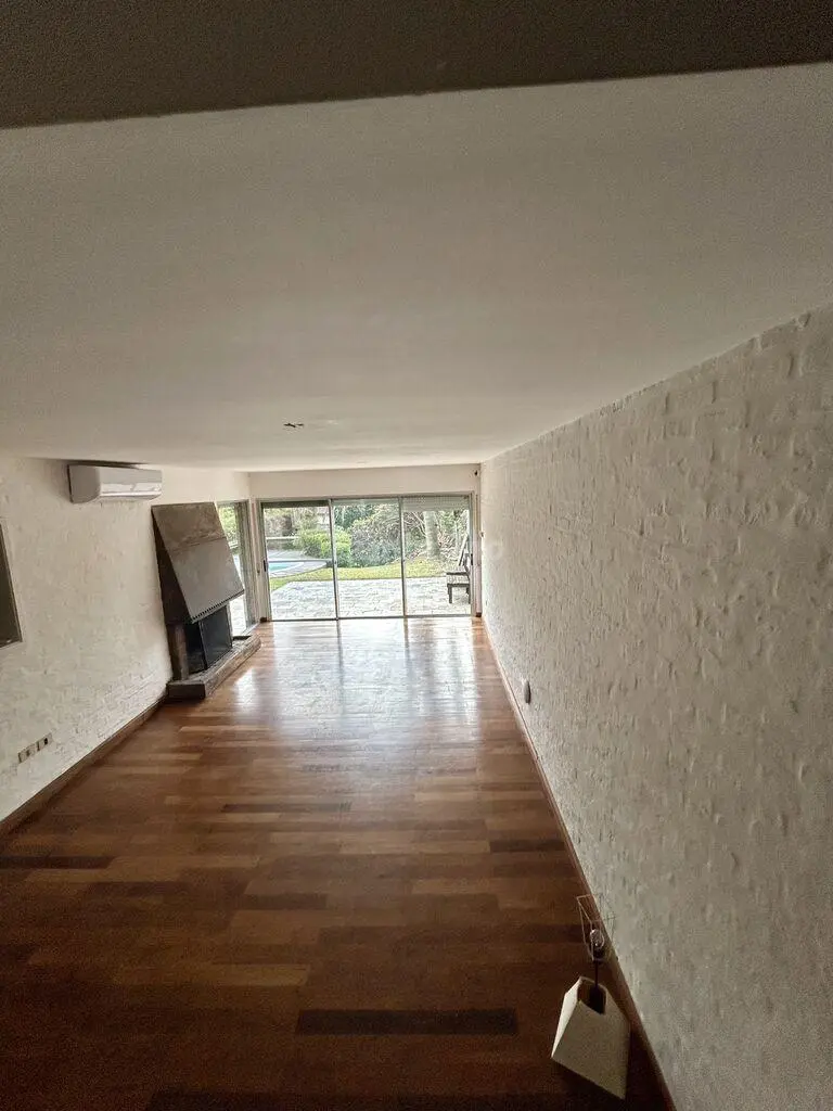 Divina casa con seguridad en Carrasco Sur. Planta muy cómoda. Living comedor que mira al frente, estar independiente con estufa a leña y salida a un jardín divino. La cocina es amplia y semi integrada al estar. En la plata alta hay 3 amplios dormitorios, la suite con baño y una terraza muy linda. Los otros dos dormitorios comparten un baño. En la tercera planta hay otro dormitorio, escrito o play room o servicio.
