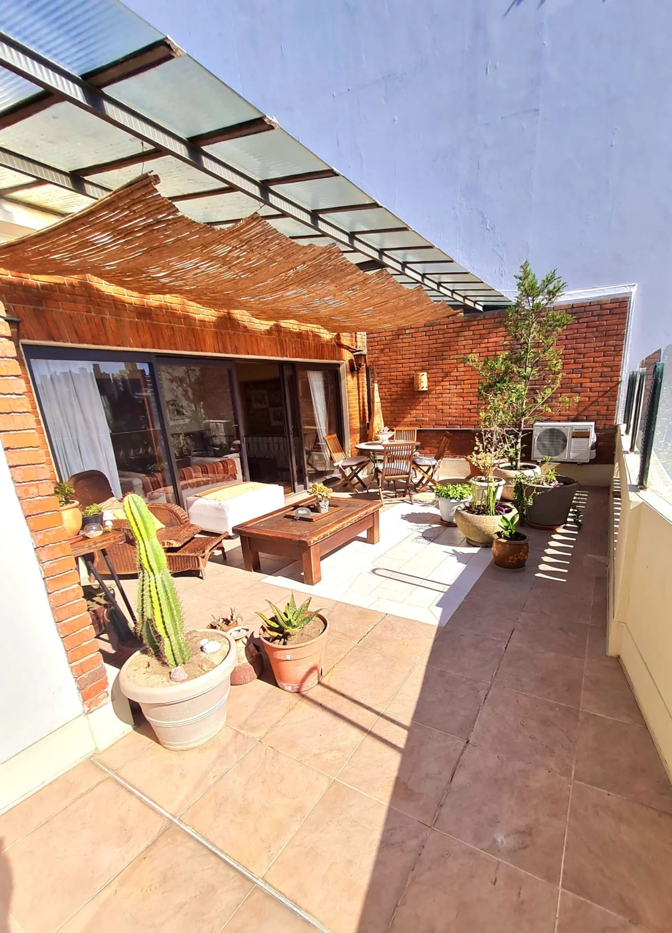 Este espacio hace único disfrutar del diseño del apartamento. Con muebles de terraza y protecciones.