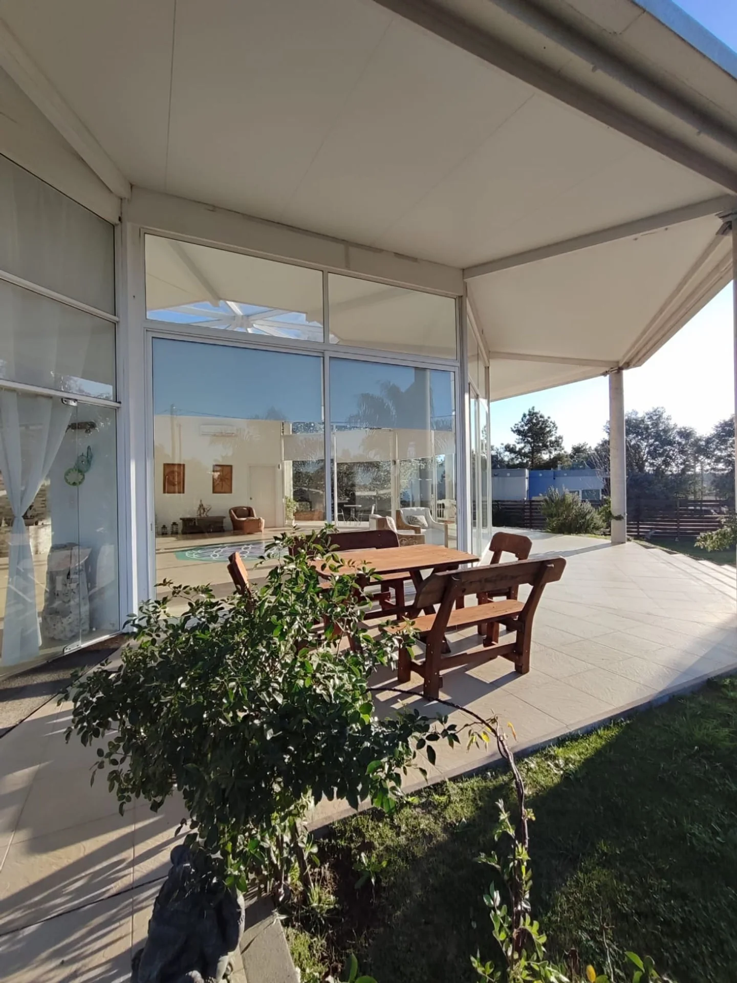 Ubicada sobre ruta 2- km. 284,5, en el barrio Los Altos de los Arrayanes ( Río Negro), esta propiedad se distingue por su arquitectura octogonal con amplias puertas-ventanales que se abren en su totalidad, techo de cúpula vidriada, que le dan gran luminosidad y permiten disfrutar el entorno del parque arbolado y las vistas privilegiadas a la curva del Río Negro.