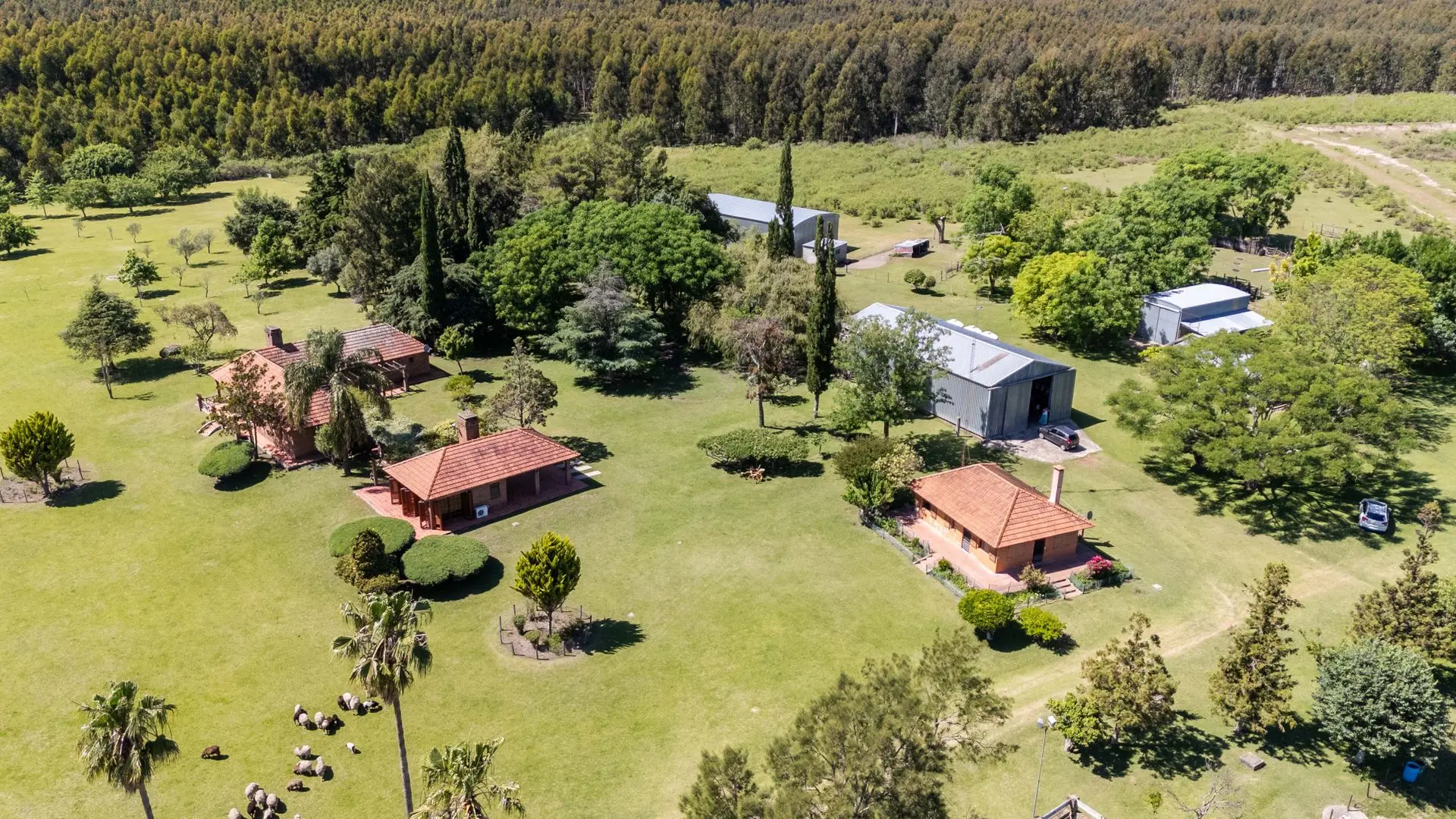 • Tres galpones con pisos de hormigón, dos con luz trifásica.
