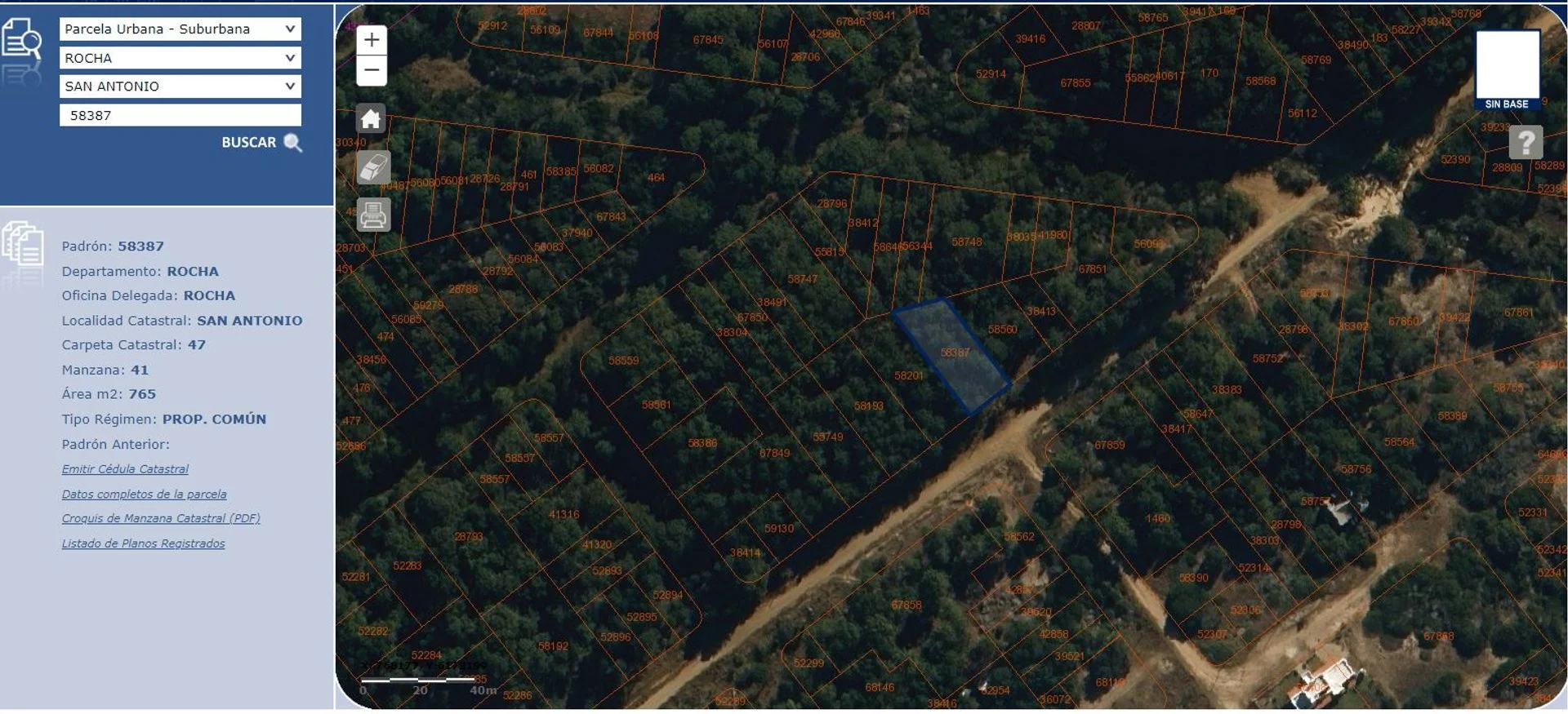 Padrón 58.387, área 765 metros cuadrados, carpeta catastral número 47 y manzana 41. Formado por la fusión de los solares 27 y 28, con 18 metros de frente por 50 de fondo aproximadamente. Es un lote que posee línea de UTE por enfrente.