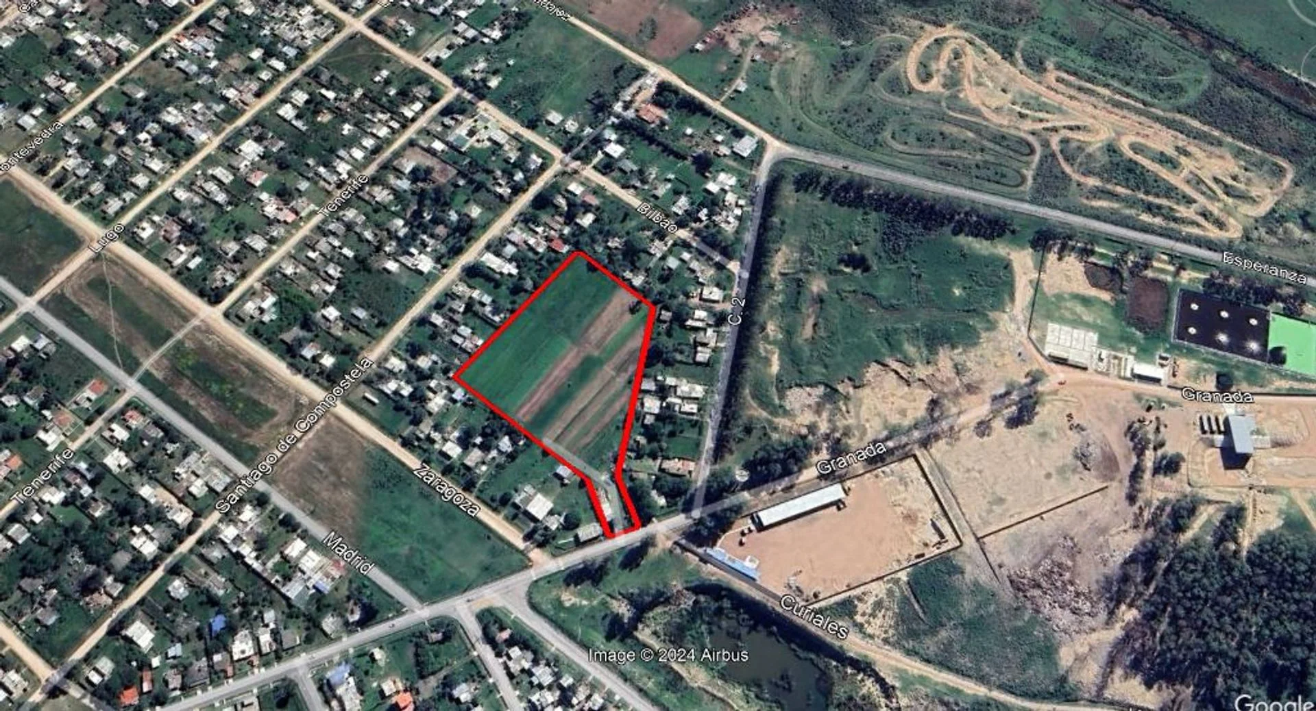 Gran terreno en venta de 16.566 m2 con salida a la calle Granada y gran superficie en el pulmón de la manzana.