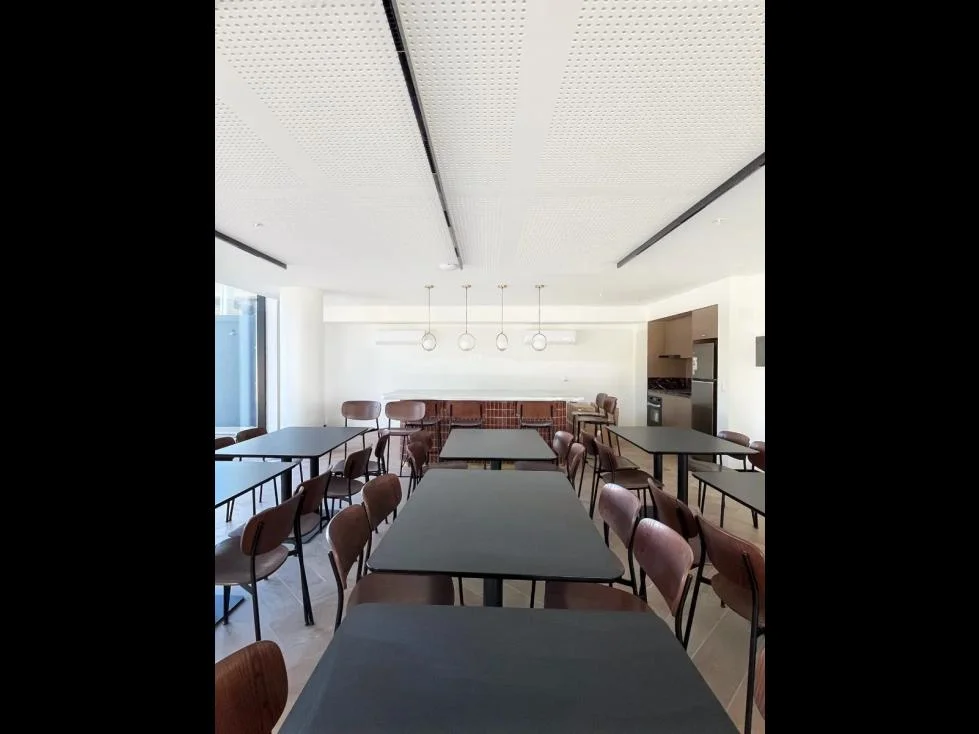 Se alquila, a estrenar, hermoso apto de 1 dormitorio Es uno de los proyectos más innovadores de la zona, por su ubicación frente a Av. de las Américas, un amplio abanico de servicios en un zócalo de cuatro niveles con comercios, viviendas y un wine bar en la terraza del cuarto piso, y variedad amenities equipados, de bajo consumo energético y de fácil mantenimiento. Es punto de encuentro entre Montevideo y Canelones, entre lagos y parques, entre la playa y la ciudad. De cara al este y a la vida de Carrasco. La torre contará con 19 niveles, con apartamentos desde monoambientes y de uno a tres dormitorios con increíbles vistas. El edificio contará con espacios de: - Cowork - Business center - Gimnasio - Salón para niños - Salón de Belleza - Laundry - SUM (salón de usos múltiples) - Barbacoa - Solarium - Piscina - Huerta Orgánica - Beneficios fiscales y pay per use El apartamento en alquiler a estrenar cuenta con 1 dormitorio en alquiler a estrenar, con orientación Sur, cuenta con terraza, cocina integrada, mobiliario bajo mesada y aéreos. A su vez, viene equipada con horno, anafe y campana. También, cuenta con previsión para lavarropas y calefón. La unidad trae pisos de vinílico de alto tránsito Verona, losa radiante eléctrica y previsión para aire acondicionado. Se aceptan mascotas. Superficie total 52,3 m² Superficie privada 49.3 Garantias Mapfre Superficie balcon 4.9 Área privada 42,3 m² Superficie de balcón 4,9 m² Dormitorios 1 Baños 1 Cocheras 1 Admite mascotas Sí Número de piso de la unidad 5 Apartamentos por piso 10 Cantidad de pisos 19 Antigüedad 0 años Disposición Frente Orientación Sur Gastos comunes 4.338 UYU Amoblado No Comodidades y equipamiento Rampa para silla de ruedas Sí Número de torre 1 Canchas de usos múltiples Sí Con área verde Sí Cowork Sí Acceso a internet Sí Gimnasio Sí Salón de usos múltiples Sí Ascensor Sí Recepción Sí Área de lavandería Sí Área de juegos infantiles Sí Sauna Sí Seguridad Circuito de cámaras de seguridad Sí Servicios Con conexión para lavarropas Sí