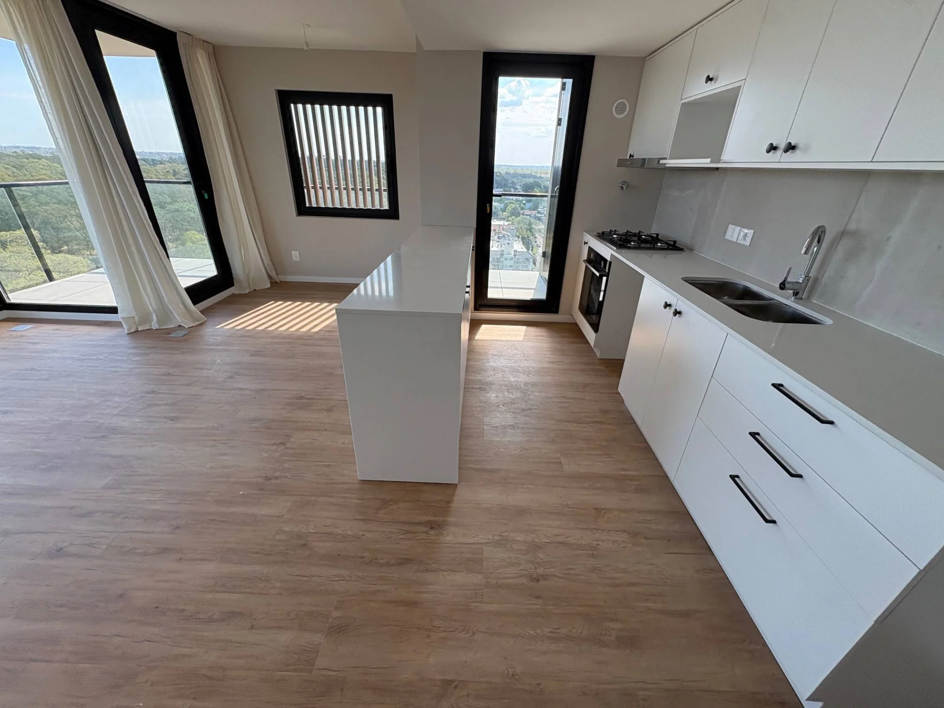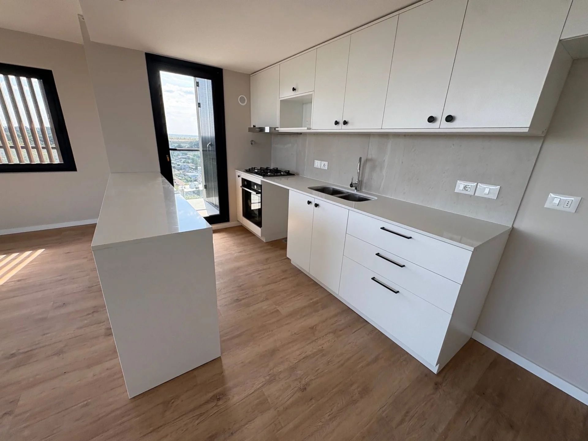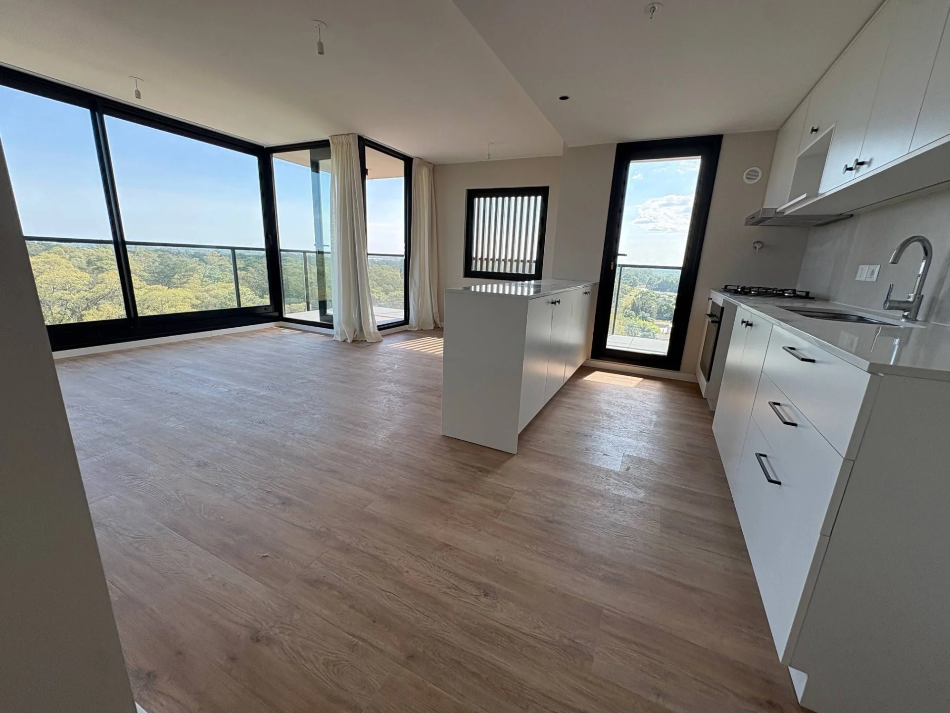 integrada a un amplio living comedor con excelentes vistas por encima del Parque Roosevelt y salida a un balcon.