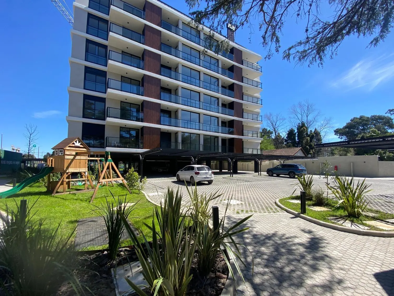 El apartamento se destaca por su calidad constructiva, con aberturas DVH (doble vidrio hermético) que mejoran el aislamiento térmico y acústico, y aire acondicionado instalado en todos los ambientes. También incluye cochera techada propia.