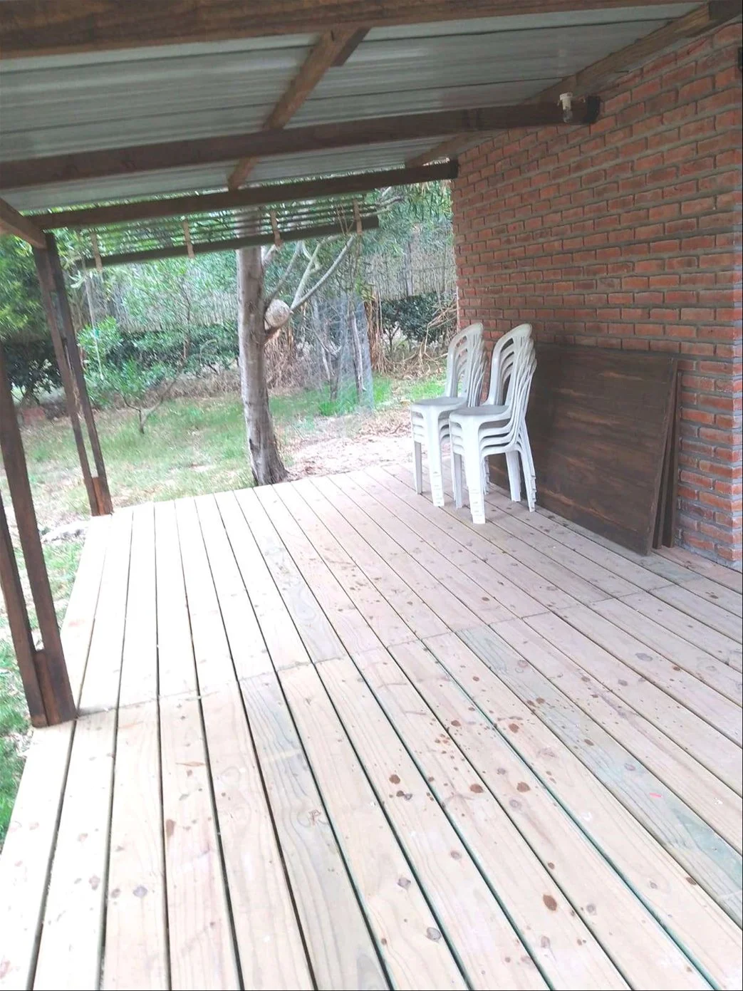 Living comedor, cocina integrada, 2 Dormitorios con placares, baño completo con calefón, deck con parrillero techado y gran parque.