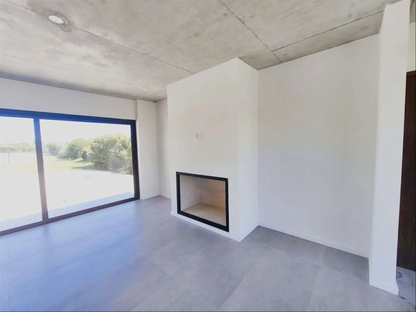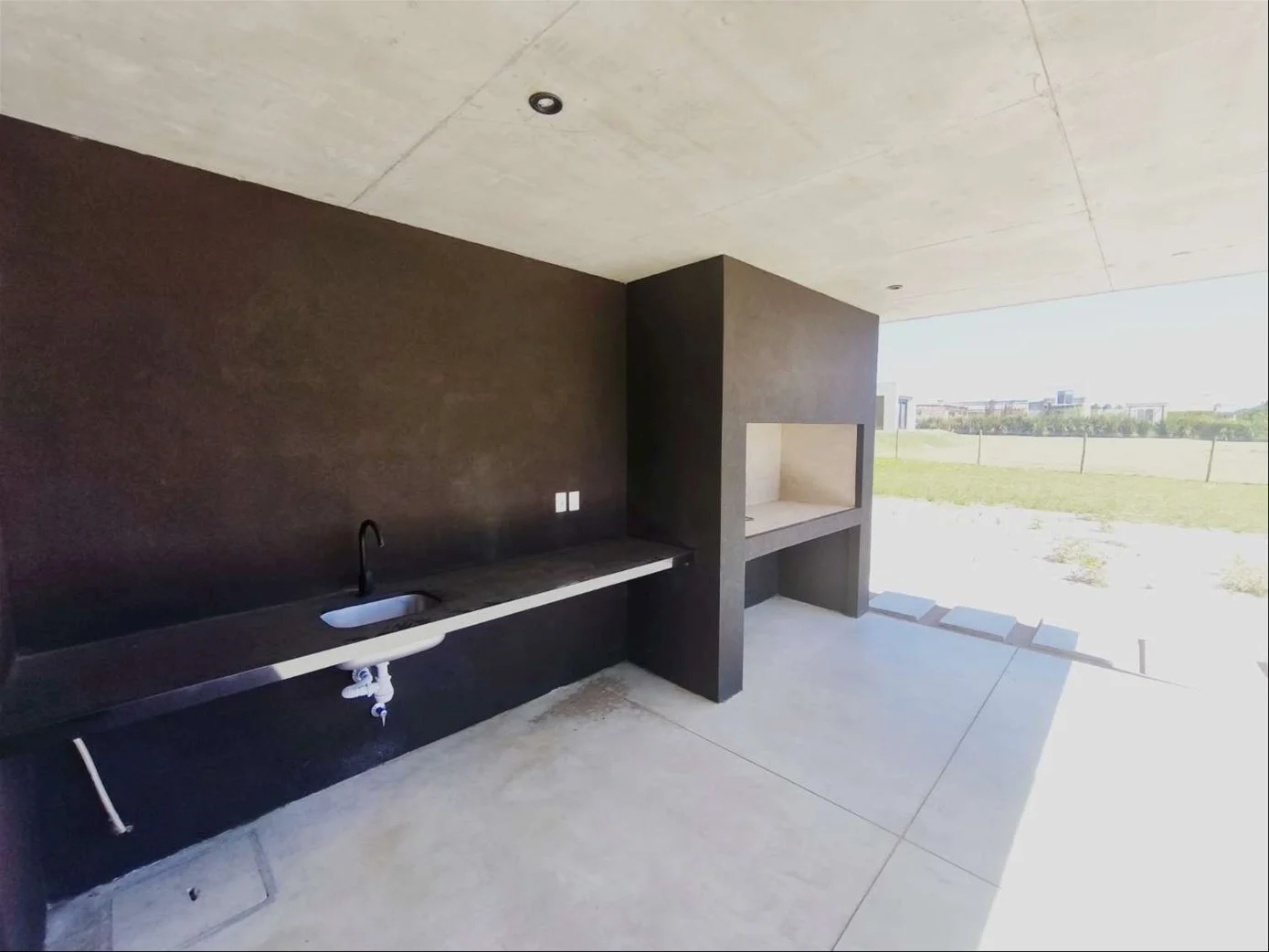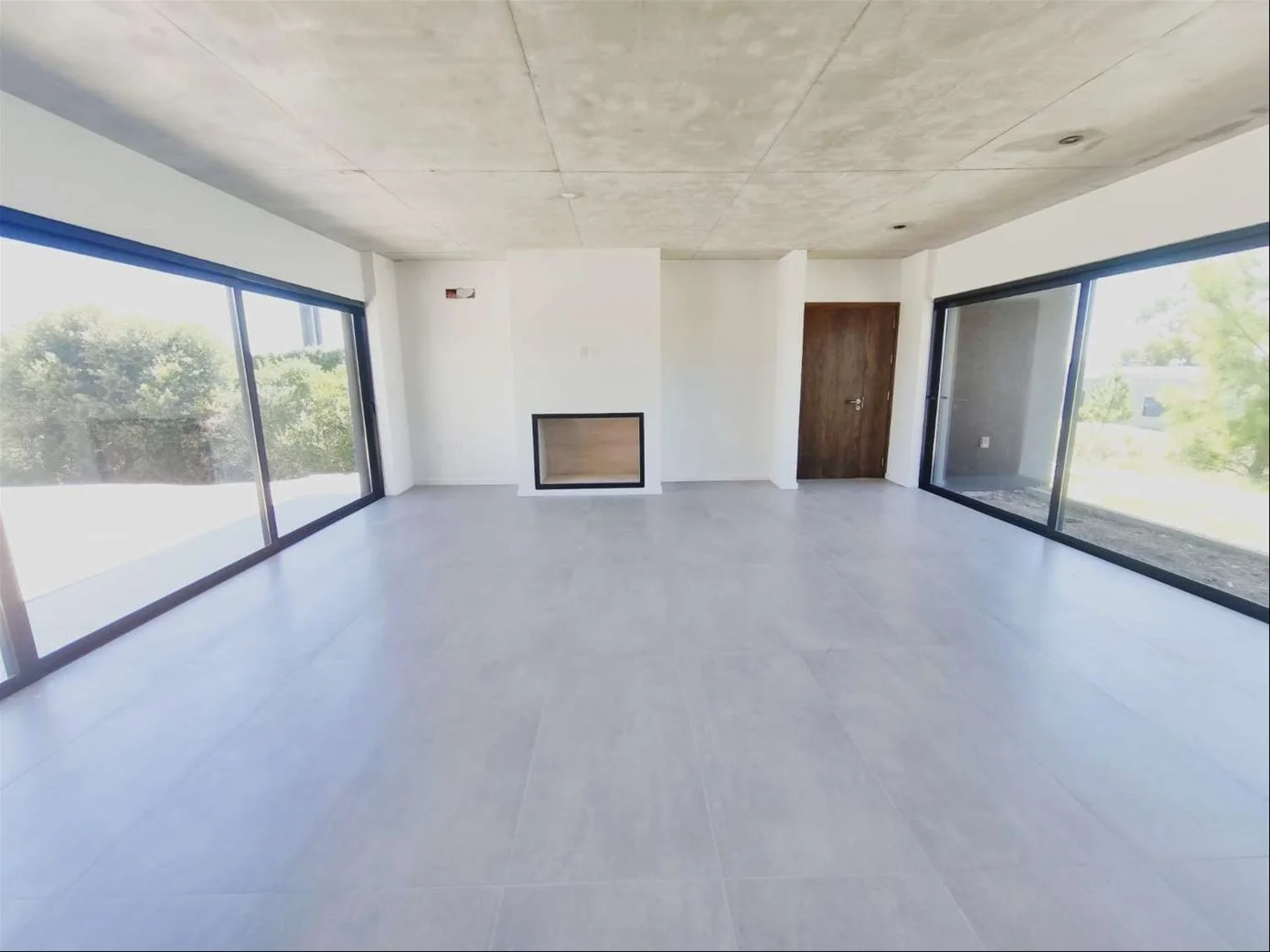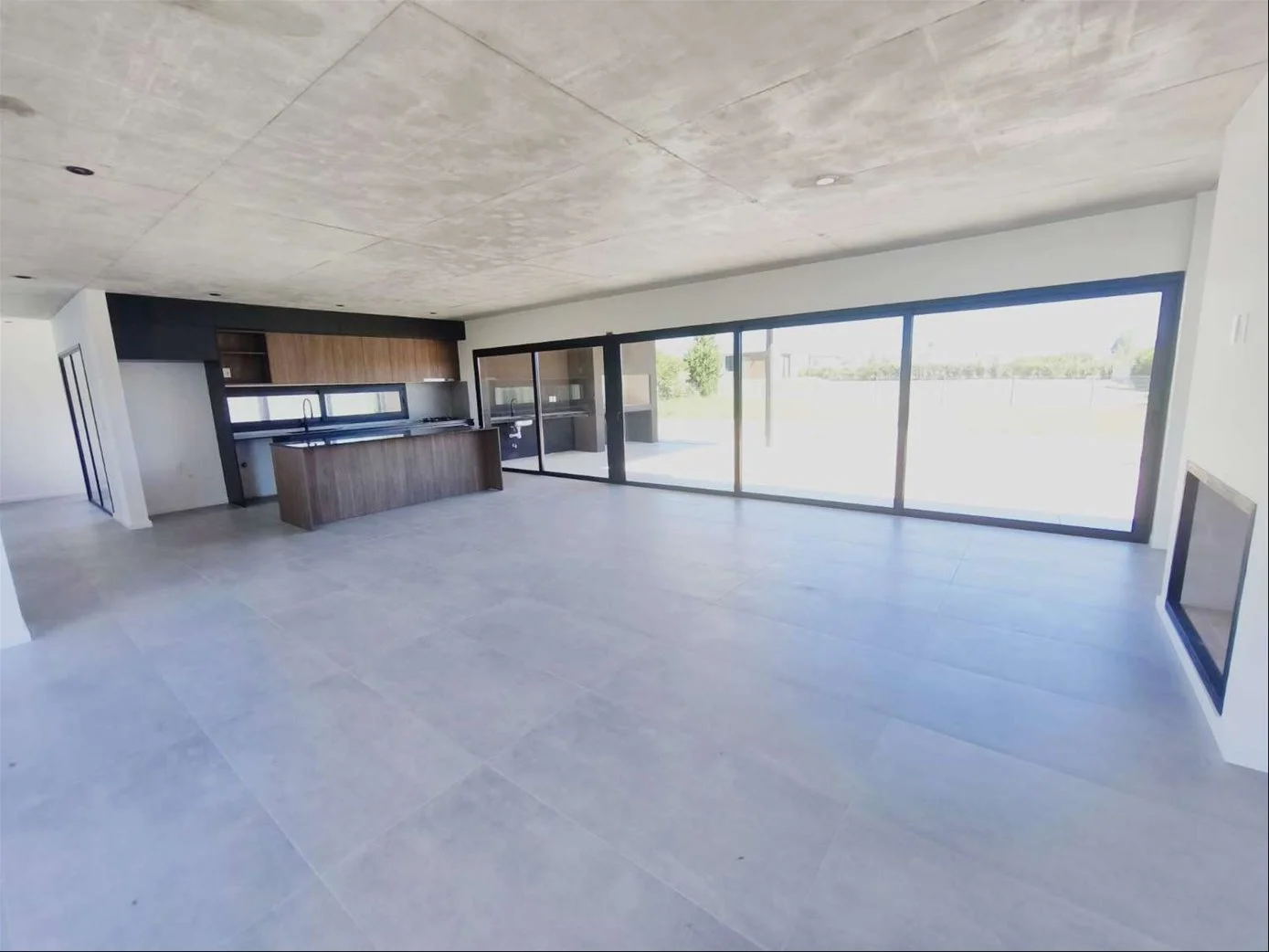 • Pisos de porcelanato en interiores y cemento en exteriores. Techos de hormigón visto.