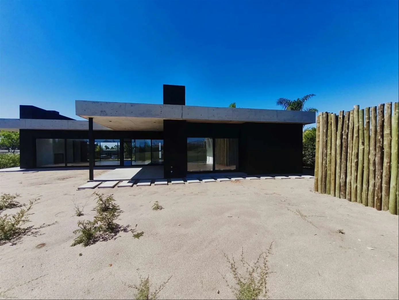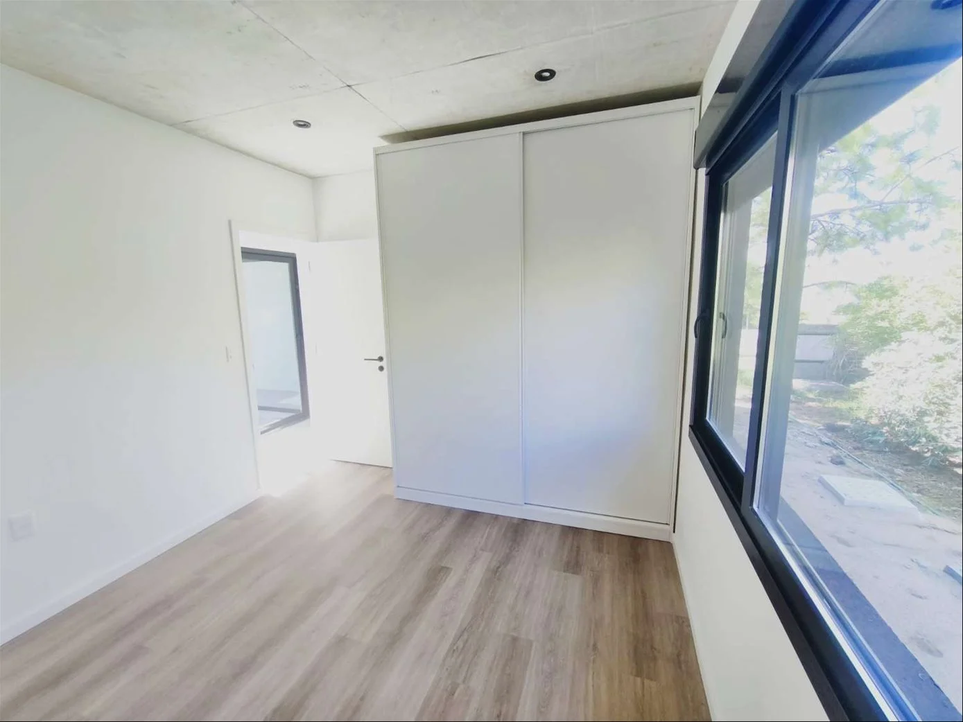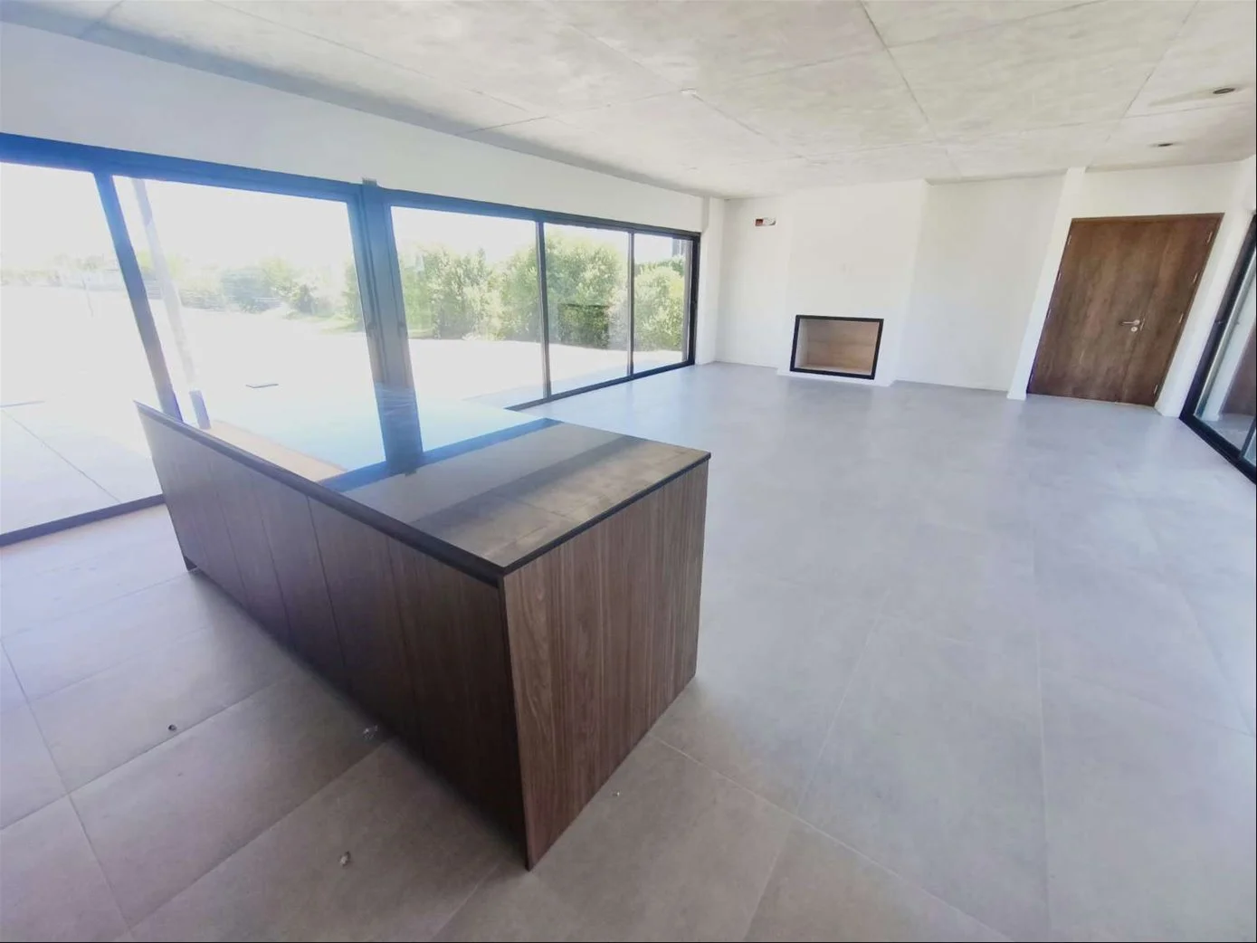 • Pisos de porcelanato en interiores y cemento en exteriores. Techos de hormigón visto.
