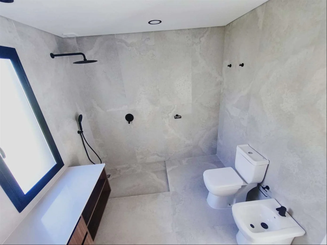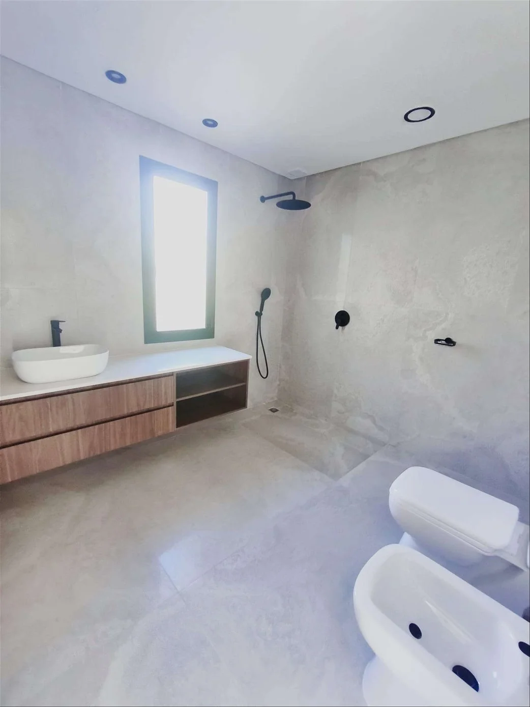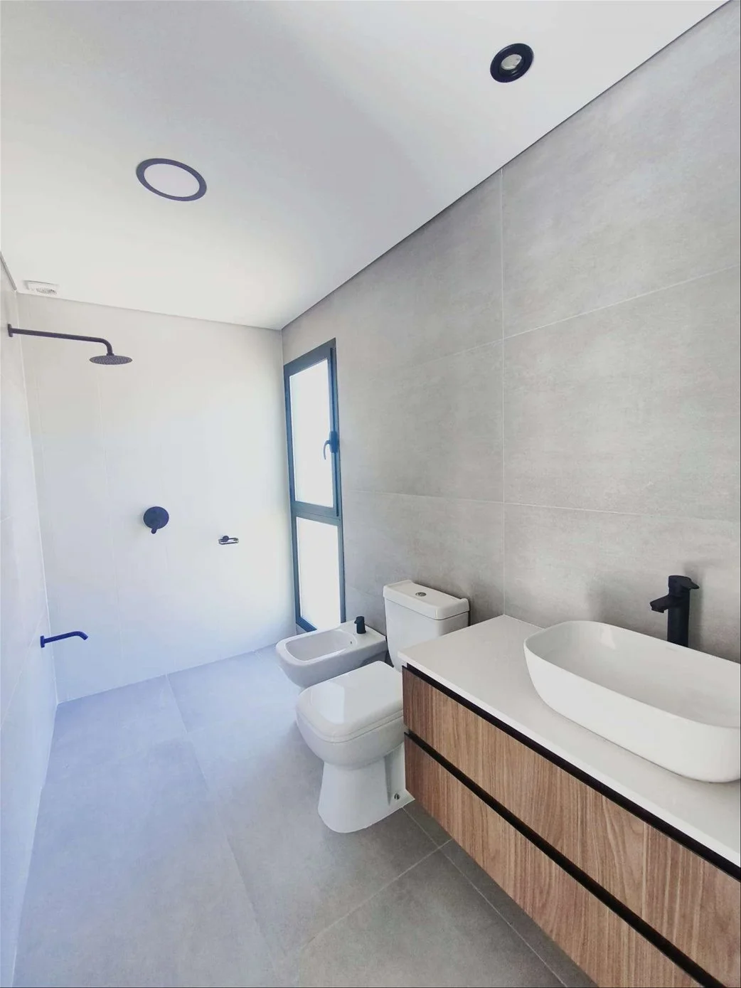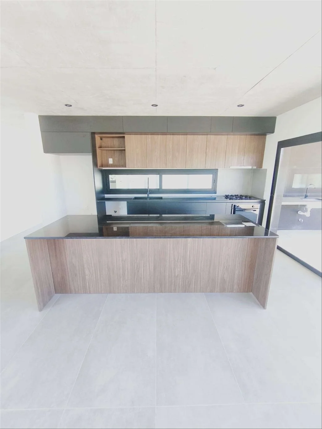 • Pisos de porcelanato en interiores y cemento en exteriores. Techos de hormigón visto.