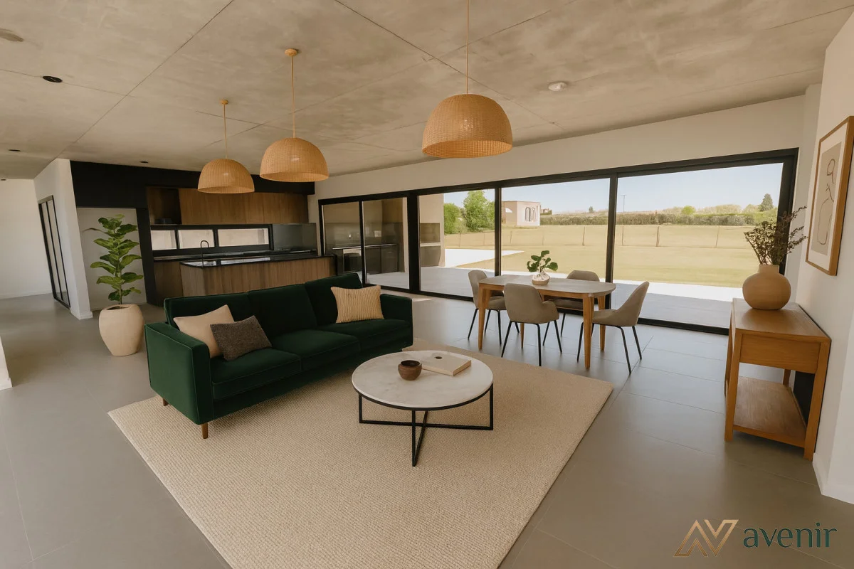 Las imágenes que muestran la casa amueblada fueron generadas digitalmente como referencia, con el objetivo de ilustrar el potencial estético y funcional de los espacios