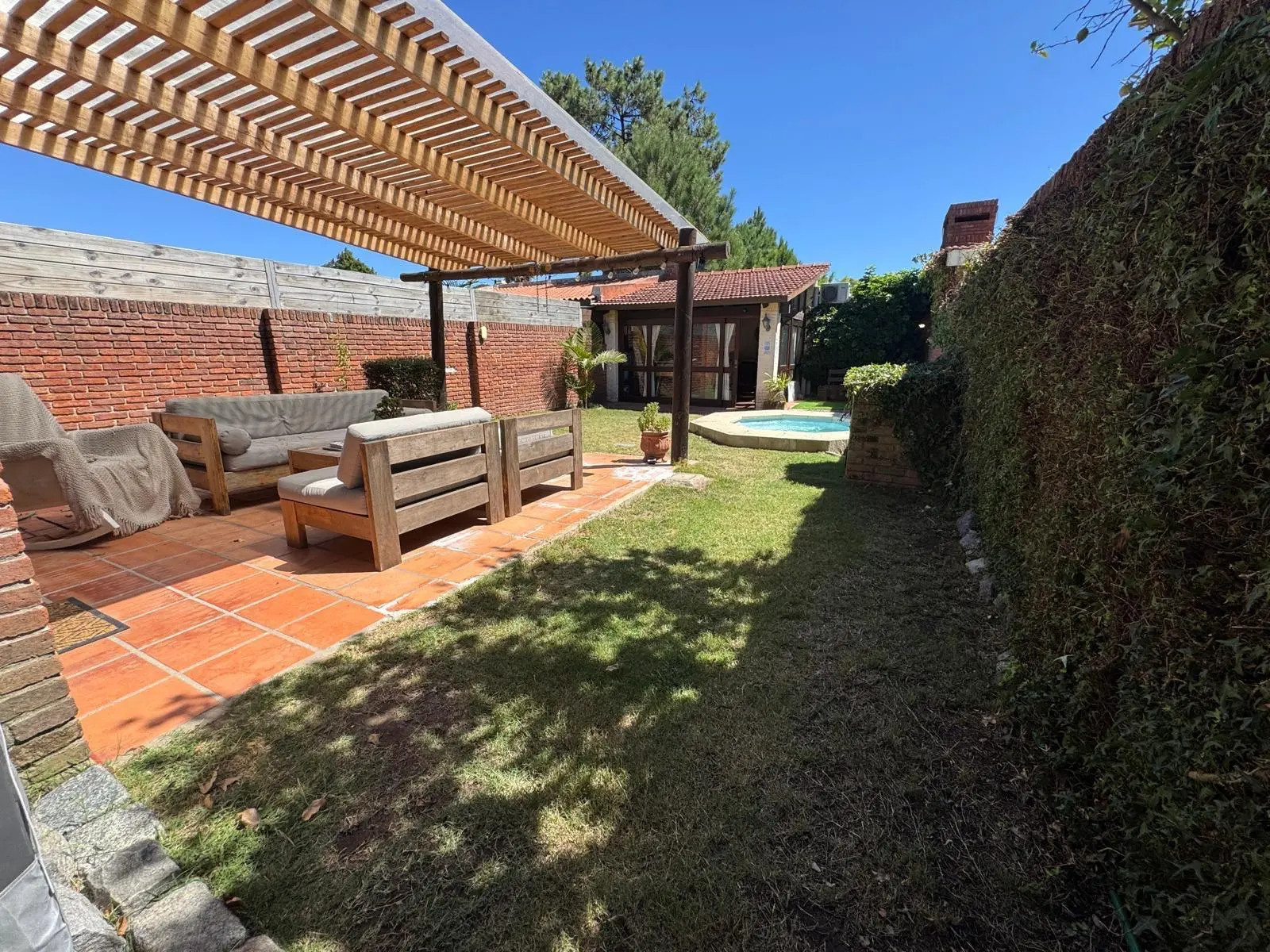 - Fondo verde amplio, soleado y muy disfrutable, con galería techada para living exterior, y pequeña piscina.